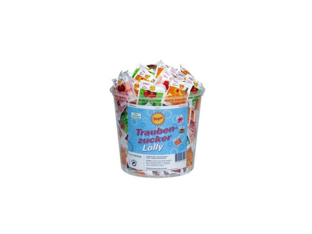 Lízanky z hroznového cukru s príchuťou jahodovou, čerešňovou a tropík.