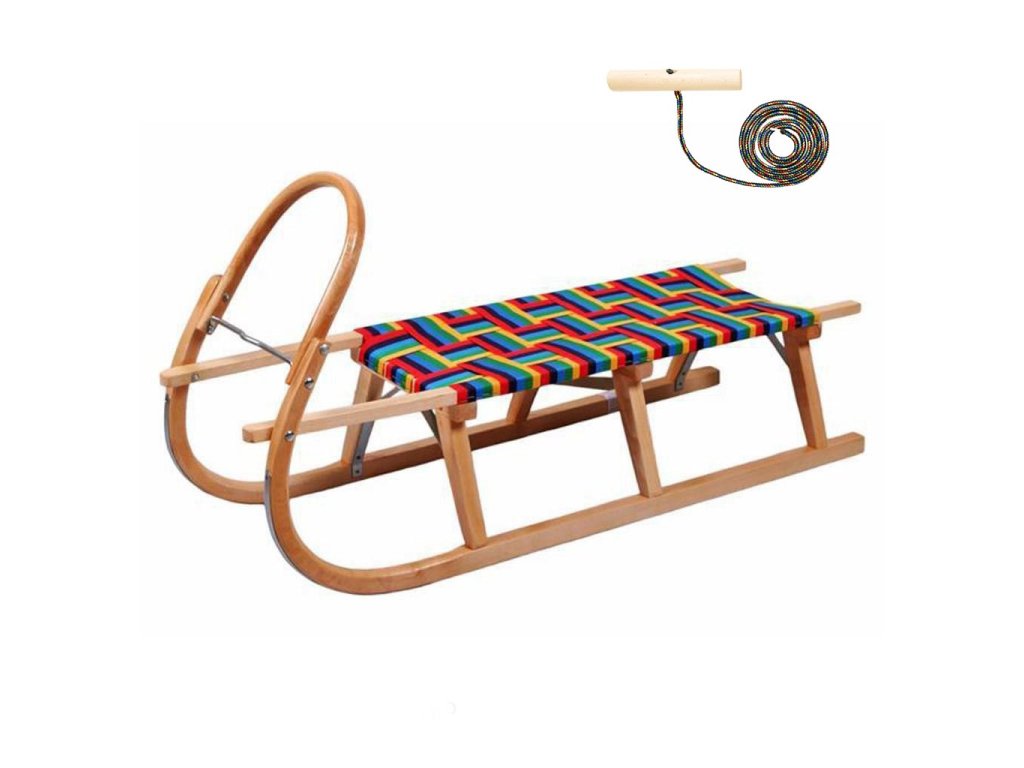 Klasické detské sánky českej značky New Baby určené na rekreačné sánkovanie. Vyrobené z kvalitného bukového dreva, sedadlo je vypletané textilnými nepremokavými popruhmi - farebné prevedenie sa líši podľa aktuálnej ponuky. Spodná časť je opatrená oceľovou sklznicou.