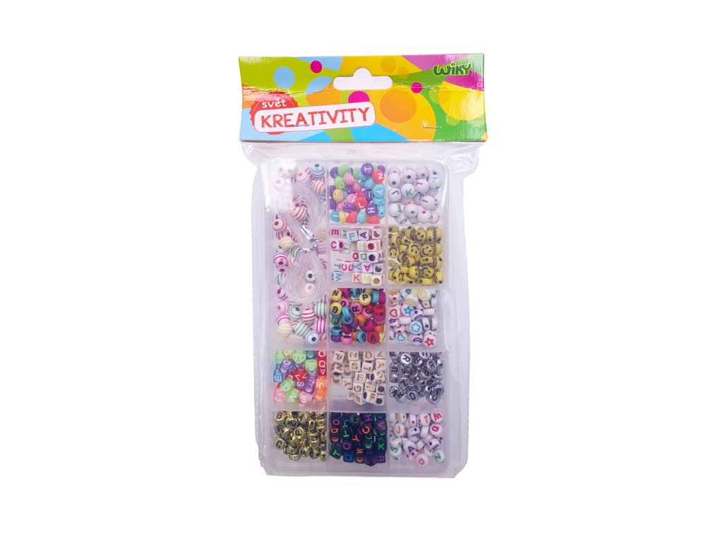 Korálkový set s hmotnosťou 90g v tvare kvádra. 13 rôznych druhov korálikov + povrázok.Dodatočné parametre