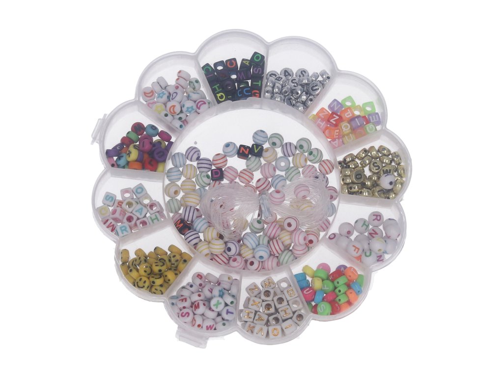 Korálkový set s hmotnosťou 90g v tvare margaréty. 13 rôznych druhov korálikov + povrázok.Dodatočné parametre