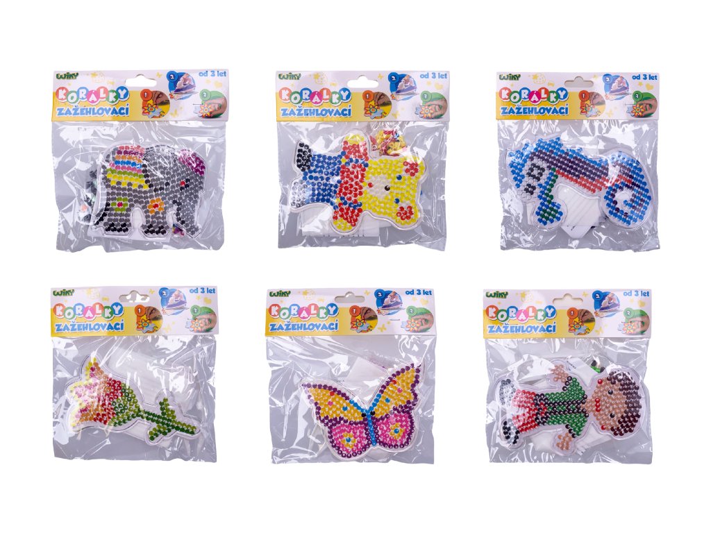 Zažehľovacie korálky set - MIX 6 rôznych vzorov - motýľ, medveď, slon, morský koník, kvetina a chlapec.Dodatočné parametre