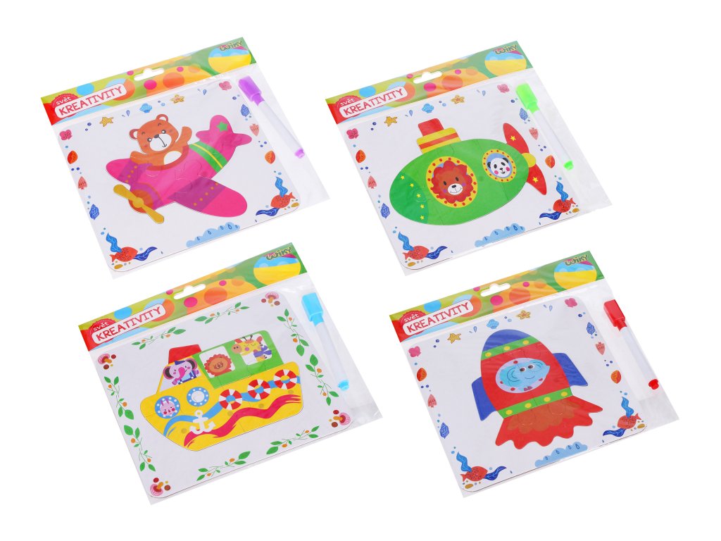 Kreatívny set 2v1 s motívmi zvieratiek. Jedna strana obsahuje puzzle a druhá strana tabuľku, na ktoré je možné písať pridelenou fixkou.Dodatočné parametre