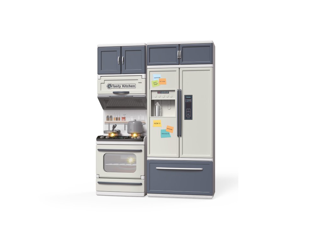 Kuchynka s efektmi. Rozmery 22,5x7x30 cm. Svetelné a zvukové efekty tlačidlom na sporáku. 3xAG13 batérie do sporáka súčasťou. Obsah - rúra so sporákom, odparovač, chladnička, skrinky, riad.Dodatočné parametre