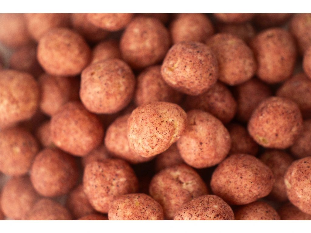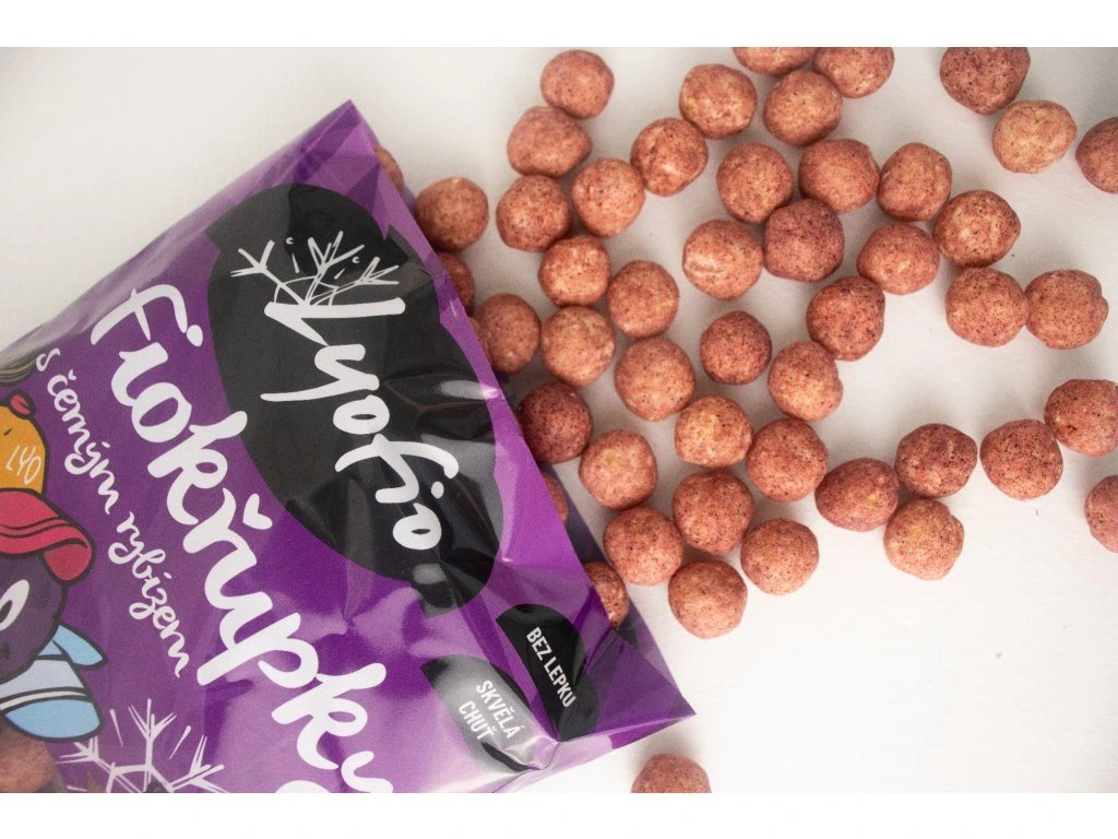 Ľahučká gulička z extrudovanej kukurice je obalená v sladkej jogurtovej poleve a nakoniec posypaná práškom z lyofilizovaných ríbezlí . Užite si špecifickú chuť ríbezlí v nenapodobiteľnej chrumkavej podobe .