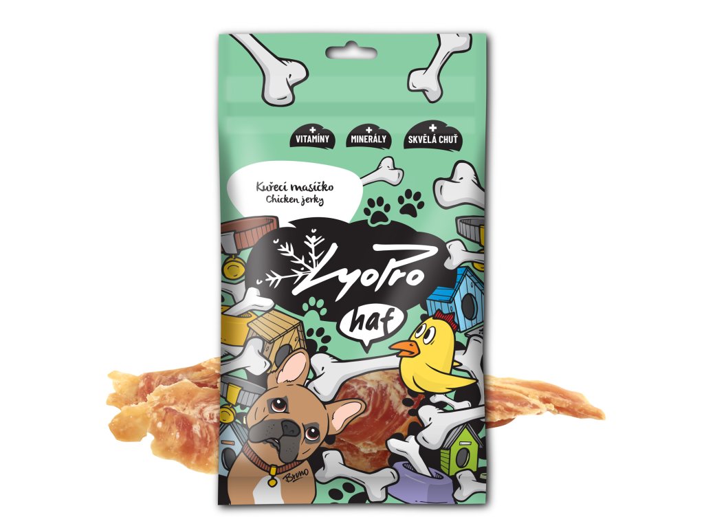 | Složení: | Kuřecí maso 86%, Rostlinné bílkoviny 1,5%, Škrob 1,4%, Glycerin 6%, Sorbitol 5%, Sorban draselný 0,1% |