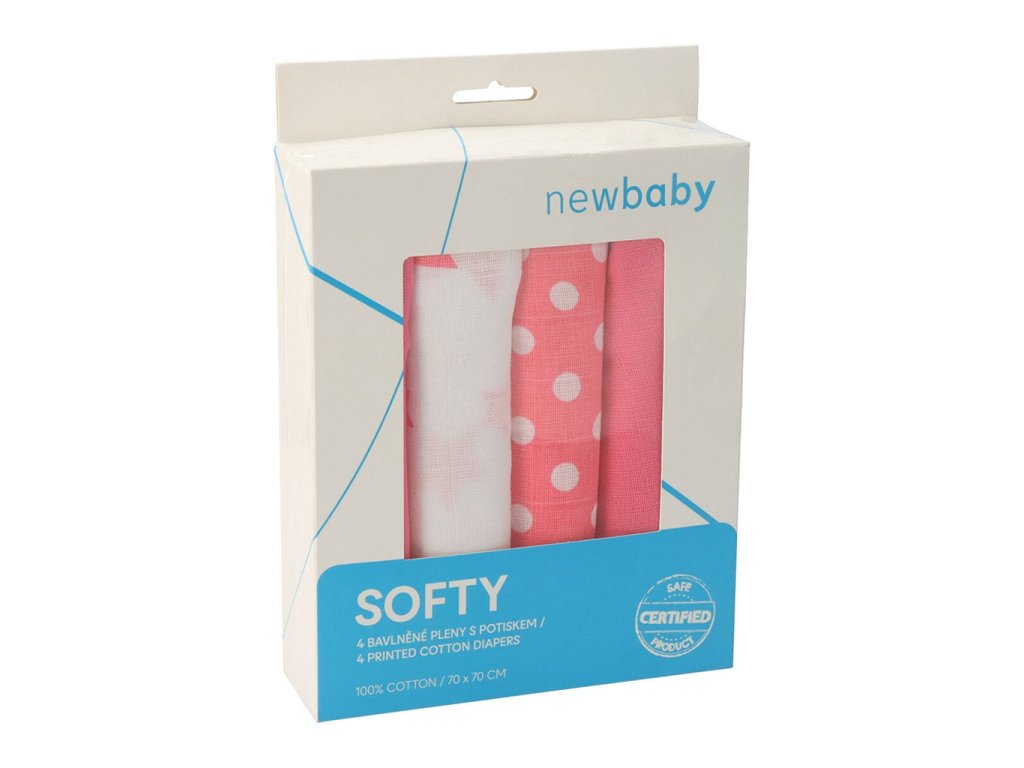 Látkové bavlnené plienky New Baby Softy s potlačou 70 x 70 cm 4 ks ružovo-biele