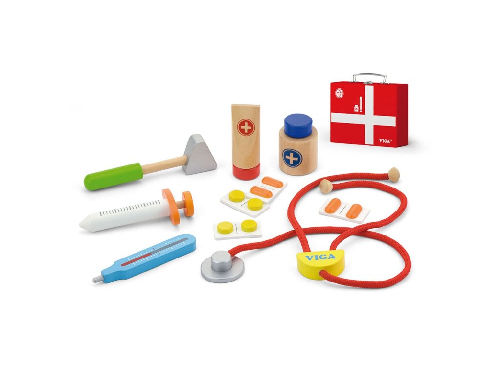 Lekársky drevený set v kufríku Viga
