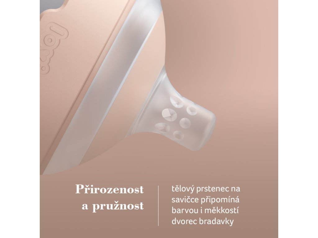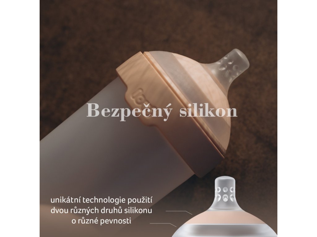 Inovatívna cumlík Mammafeel čo najviac pripomína matkin prsník z hľadiska farby, tvaru, tepla a dynamiky, takže aj v čase sania mlieka z fľaše môže bábätko cítiť teplo a blízkosť ako u mamičky. A mamička, aj keď je potrebné kŕmiť z fľaše, môže bez problémov zároveň dojčiť, teda kombinovať dojčenie a kŕmenie z fľaše. cumlík fľaše Mammafeel nielen čo najviac napodobňuje blízkosť a prirodzené sanie z prsníka, ale zároveň nenarúša sací reflex, takže sa bábätko môže voľne vracať k saniu z prsníka mamičky. nosti: Cumlík inšpirovaný mamičkiným prsiamPrirodzenosť a pružnosť, pretože jemný prstenec na cumlíku pripomína dvorec bradavkyMäkkosť a zamatosť vďaka matnému povrchu cumlíkaTvar a proporcie podľa vzoru mamičkiných pŕs zaisťujú, aby ústa dieťaťa boli umiestnené v správnom uhleNenarušujte sací reflex, vďaka dynamickému cumlíkuAntikolikový cumlík - umožňuje umiestniť pery správne, rôznou pevnosťou Cumlíky s rôznym prietokom prispôsobené vývoju dieťaťaPúzdro (balenie) na dezinfekciuV SETU:dynamický cumlíkdezinfekčné púzdroInovatívny cumlík MammafeelTak blízko mamičkinho prsníka, bezpečný na dojčenie.Dynamický cumlík variabilnýPrietok cumlíka Pohodlné balenie, ktoré možno použiť na dezinfekciu. Jemnosť a zamatovosť Matný jemný povrch cumlíka napodobňuje kožu mamičky, jej textúru a jemnosť. Prirodzenosť a elasticita cumlíky prirodzene pripomína farbu a mäkkosť dvorca bradavky. Tvar a proporcie Široký, profilovaný tvar po vzore mamčiných pŕs a dokonalé proporcie zaisťujú, že ústa dieťaťa sú umiestnené v správnom uhle, pery sú pevne zovreté a dieťa môže voľne dýchať nosom, čo môže voľne dýchať nosom. ičke a pevnej základni nenarúša sací reflex.Vhodný uhol otvorenia úst dieťaťaSprávna podpora detských úst a vhodne uložené pery, čo umožňuje každému dieťaťu pohodlne sať, bez toho aby ústa skĺzla z povrchu cumlíka. sahuje BPA.Pre deti od 6 mesiacov.Možno umývať v umývačke riadu.Možno použiť mikrovlnnú rúru.Nalievanie vriacej vody.Sterilizácia vo vriacej vode.Sterilizátor.Návod na použitie (cumlík): Pred prvým použitím výrobok očistite a potom vložte na 5 min do vriacej vody, tento proces zaistí hygienu. Pred každým použitím cumlík umyte v teplej vode, aby bola zaistená hygiena. Pri umývaní je potrebné venovať zvláštnu pozornosť tomu, aby nedošlo k poškodeniu ventilu. Cumlík sa neodporúča umývať v umývačke, pretože umývacie prostriedky môžu výrobok poškodiť. Cumlík je možné dezinfikovať v mikrovlnnom sterilizátore/parnom sterilizátore alebo pomocou sterilizačného puzdra. Nepoužívajte žiadne antibakteriálne látky. Skontrolujte cumlík pred každým použitím a zatiahnite za cumlík všetkými smermi. Zvlášť keď má dieťa zuby. Pri prvých známkach poškodenia alebo oslabenia materiálu výrobok vyhoďte. Neuťahujte príliš skrutkovaciu objímku fľaše, pretože by to mohlo narušiť ventiláciu cumlíka. Vždy skontrolujte tesnosť. Pokiaľ dôjde k úniku tekutiny, opäť odskrutkujte uzáver a skontrolujte, či je cumlík správne nasadený. Prietokové otvory cumlíka nikdy žiadnym spôsobom nezväčšujte, mohlo by dôjsť k poškodeniu cumlíka. Nenechávajte cumlík na priamom slnku alebo teple ani ho nenechávajte v dezinfekčnom prostriedku („sterilizačnom roztoku“) dlhšie, než je odporúčané, pretože to môže cumlík poškodiť. Odporúča sa vymeniť cumlík max. po 2 mesiacoch používania. Výrobok nie je hračka. Uschovajte návod na neskoršie použitie. Kód šarže je umiestnený na obale. Pre bezpečnosť a zdravie Vášho dieťaťa UPOZORNENIE! Neustále a dlhodobé sanie tekutín spôsobuje zubný kaz. Pred kŕmením vždy skontrolujte teplotu jedla. Pri prvom náznaku poškodenia alebo opotrebenia výrobok vyhoďte. Nepoužívané súčasti výrobku uchovávajte mimo dosahu detí. Nikdy nespájajte so šnúrami, stuhami, šnúrkami alebo s voľnými časťami oblečenia, mohlo by dôjsť k uškrteniu dieťaťa. Nikdy nepoužívajte cumlík na kŕmenie ako bežný cumlík. Používajte tento výrobok vždy pod dohľadom dospelých. Návod, ako dezinfikovať cumlík v sterilizačnej kapsuli UPOZORNENIE! Nedodržanie tohto pokynu môže viesť k popáleniu alebo poškodeniu výrobku a/alebo mikrovlnnej rúry.• Pred použitím vždy skontrolujte hladinu vody v sterilizačnej kapsule.• Jednu cumlík možno dezinfikovať naraz v sterilizačnej kapsule.• Tento výrobok nie je hračka. Používajte a skladujte výrobok mimo dosahu detí. POUŽITIE1. Pred prvým a každým ďalším použitím umyte kapsulu v teplej vode s jemným saponátom, dôkladne opláchnite.2. Na dno nalejte 25 ml prevarenej vody. DÔLEŽITÉ Pridanie príliš malého množstva vody môže poškodiť puzdro. Pridanie príliš veľkého množstva vody môže spôsobiť nedostatočnú dezinfekciu.3. Vložte cumlík do kapsule.4. Pevne uzavrite veko.5. Uzavretú kapsulu vložte do mikrovlnnej rúry.6. Pre mikrovlnné rúry 750-1000 W je doba dezinfekcie 2 minúty. Neprekračujte dobu dezinfekcie. UPOZORNENIE! • Kapsule musia byť počas dezinfekcie umiestnené na rovnom povrchu. • Pred vybratím z mikrovlnnej rúry vždy počkajte aspoň 5 minút, než kapsula vychladne. Pri vyberaní a otváraní buďte opatrní. • Vylejte zostávajúcu vodu z kapsule cez určený otvor, opláchnite a osušte. • Pri vyberaní dezinfikovaného cumlíka buďte zvlášť opatrní, pretože môže byť horúca. • Pred ďalšou dezinfekciou počkajte 15 minút požiadavky na materiály a predmety určené na styk s potravinami,EN 14350 - 1 Výrobky na starostlivosť o dieťa - Vybavenie na pitie - Časť 1: Všeobecné a mechanické požiadavky a skúšky,EN 14350 – 2 Výrobky na starostlivosť o dieťa - Vybavenie na pitie - Časť 2: Chemi