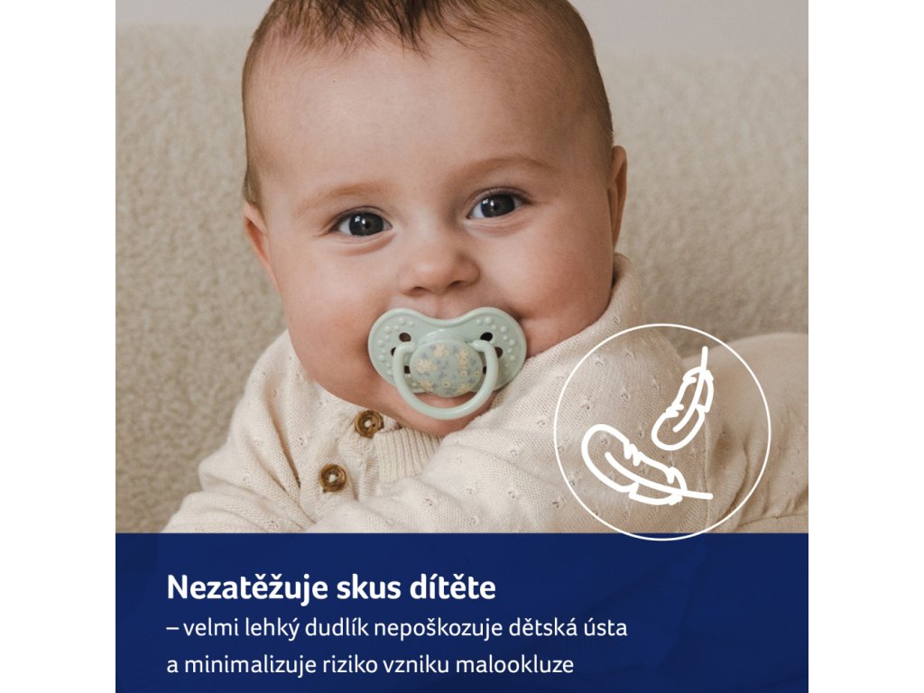 Dynamický cumlík LOVI nenarúša sací reflex bábätka, vývoj reči a zhryzu pri dodržaní ďalších ortondotických a nerologopedických odporúčaní. Cumlík je veľmi ľahký, dieťa sa pri saní nenamáha. Tvar silikónovej špičky je prispôsobený prirodzenému saciemu reflexu, silikónová časť je úzka na začiatku pri štítku a rozšírená na konci tak, aby sa špička naťahovala a sťahovala podľa rytmu sania dieťaťa. Vďaka tomu je chránený sací reflex bábätiek a sanie cumlíka nemá nepriaznivý vplyv na dojčenie. Symetrický tvar špičky vychádza z tvaru mamičkinej bradavky naplnenej mliekom, ktorá poskytuje bábätku dôverne známy pocit podobný pocitu sania z prsníka. Špička je sploštená a koniec cumlíka je tak tenký, že umožňuje dieťaťu voľne zatvárať ústa a správne pracovať ďasnami pri saní a zároveň poskytuje dostatok priestoru v ústach pre prácu jazyka, čo znižuje riziko vzniku malooklúzie a chýb reči *.*Štúdia používania cumlíkov pre neurologických klinikách v Poľsku, prevádzkovaných v rámci Národného fondu zdravia, v Katoviciach, Rzeszówe a Bydgoszczi, zahrňujúce pôrodné asistentky a rodičov, v roku 2010. davce naplnené mliekom, bábätku poskytuje podobný pocit ako u prsníka mamičky. VOĽNÉ DÝCHANIE NOSOMTvarovaný štítok pod nosom, ktorý uľahčuje voľné dýchanie a polykálne slín rovnako ako u mamičkinho prsníka. BEZPEČNÉ PRE SKUS A VÝVOJ REČIDynamická špička so splošteným koncom sa pri saní dieťaťa natiahne a poskytuje tak dostatok priestoru v ústach pre prácu jazyka a zamedzuje tak vzniku krivých zubov (malooklúzie). ZABRAŇUJE REFLEXU KÚSANIE CUMLÍKAVeľmi ľahký cumlík, ktorý nezaťažuje detské ústa a minimalizuje tak riziko vzniku krivých zubov (malooklúzia). OBĽÚBENÝ DETSKÝ CUMLÍKPotvrdené v spotrebiteľskom prieskume vykonanom na skupine 700 matiek detí vo veku 0-24 mesiacov, GfK, november 2018. ANTIALERGICKÝ Jemný silikón v cumlíku je pre bábätko na vonkajšie podnety.JEMNÝ K POKOŽKEOtvory v štítku umožňujú detskej pokožke voľne dýchať a nedráždia tak pokožku.POHODLNÝ ÚCHYTUľahčuje podanie cumlíka dieťaťu a pripevnenie na stužku alebo retiazku. PRISPÔSOBENÉ STARŠÍM DEŤOMilikonová špička cumlíka je zosilnená a tým odolnejšia proti hryzeniu. Praktické v období intenzívneho vývoja zubov a ďasien. V SETE:2 ks dynamických cumlíkov LOVIpúzdro na hygienické uchovávanie cumlíkaBPA-free Nalievanie vriacej vody Sterilizátor Nepoužívajte v mikrovlnnej rúre Nepoužívajte v umývačke riaduPre bezpečie vášho dieťaťaVAROVANIE!Pred každým použitím výrobok dôkladne skontrolujte. Ťahajte za silikónovú časť cumlíka vo všetkých smeroch. Pri prvých známkach poškodenia alebo opotrebovania materiálu ho ihneď vyhoďte. Používajte iba špeciálne stužky/retiazky na cumlíky, ktoré zodpovedajú norme EN 12586. Nikdy nepripevňujte k cumlíku iné stužky alebo šnúrky, vaše dieťa by sa nimi mohlo uškrtiť.