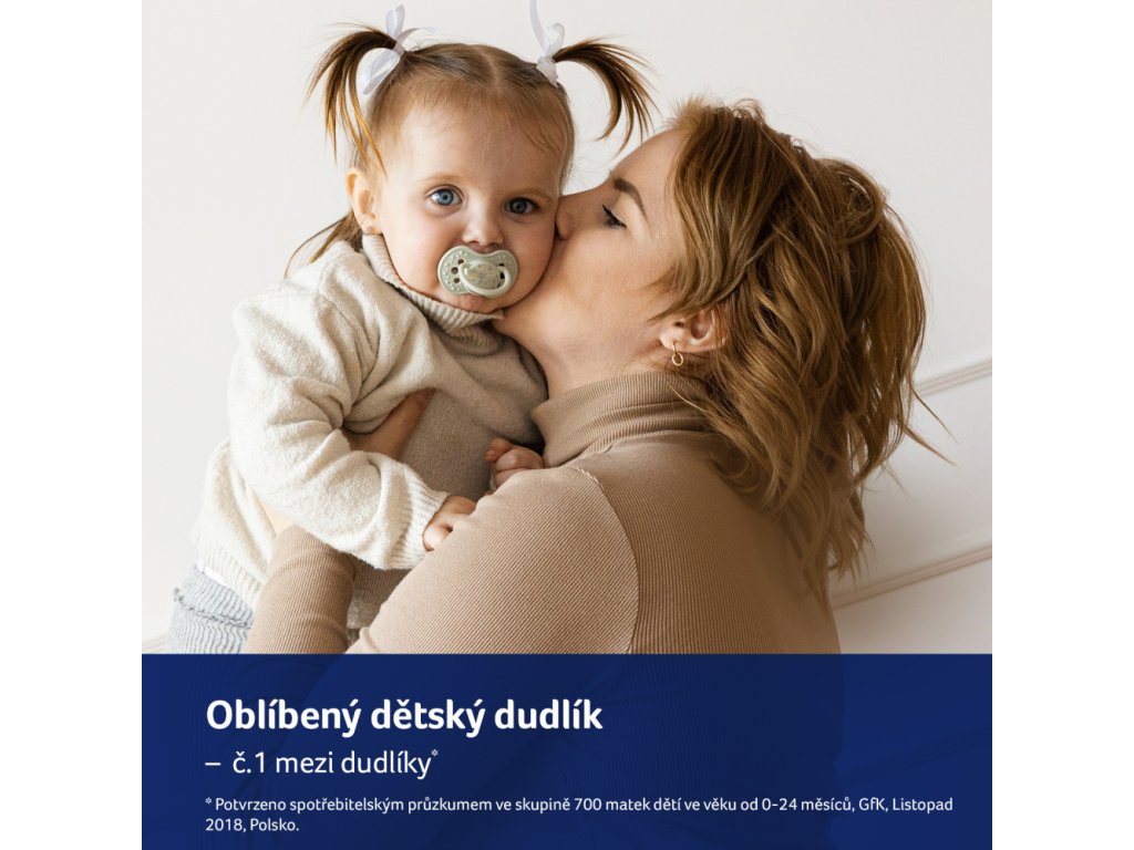 Dynamický cumlík LOVI nenarúša sací reflex bábätka, vývoj reči a zhryzu pri dodržaní ďalších ortondotických a nerologopedických odporúčaní. Cumlík je veľmi ľahký, dieťa sa pri saní nenamáha. Tvar silikónovej špičky je prispôsobený prirodzenému saciemu reflexu, silikónová časť je úzka na začiatku pri štítku a rozšírená na konci tak, aby sa špička naťahovala a sťahovala podľa rytmu sania dieťaťa. Vďaka tomu je chránený sací reflex bábätiek a sanie cumlíka nemá nepriaznivý vplyv na dojčenie. Symetrický tvar špičky vychádza z tvaru mamičkinej bradavky naplnenej mliekom, ktorá poskytuje bábätku dôverne známy pocit podobný pocitu sania z prsníka. Špička je sploštená a koniec cumlíka je tak tenký, že umožňuje dieťaťu voľne zatvárať ústa a správne pracovať ďasnami pri saní a zároveň poskytuje dostatok priestoru v ústach pre prácu jazyka, čo znižuje riziko vzniku malooklúzie a chýb reči *.*Štúdia používania cumlíkov pre neurologických klinikách v Poľsku, prevádzkovaných v rámci Národného fondu zdravia, v Katoviciach, Rzeszówe a Bydgoszczi, zahrňujúce pôrodné asistentky a rodičov, v roku 2010. davce naplnené mliekom, bábätku poskytuje podobný pocit ako u prsníka mamičky. VOĽNÉ DÝCHANIE NOSEMTvarovaný štítok pod nosom, ktorý uľahčuje voľné dýchanie a polykálne slín rovnako ako u mamičkinho prsníka. BEZPEČNÉ PRE SKUS A VÝVOJ REČIDynamická špička so splošteným koncom sa pri saní dieťaťa natiahne a poskytuje tak dostatok priestoru v ústach pre prácu jazyka a zamedzuje tak vzniku krivých zubov (malooklúzie). ZABRAŇUJE REFLEXU KÚSANIE CUMLÍKAVeľmi ľahký cumlík, ktorý nezaťažuje detské ústa a minimalizuje tak riziko vzniku krivých zubov (malooklúzia). OBĽÚBENÝ DETSKÝ CUMLÍKPotvrdené v spotrebiteľskom prieskume vykonanom na skupine 700 matiek detí vo veku 0-24 mesiacov, GfK, november 2018. ANTIALERGICKÝ Jemný silikón v cumlíku je pre bábätko na vonkajšie podnety.JEMNÝ K POKOŽKEOtvory v štítku umožňujú detskej pokožke voľne dýchať a nedráždia tak pokožku.POHODLNÝ ÚCHYTUľahčuje podanie cumlíka dieťaťu a pripevnenie na stužku alebo retiazku. V SETE:2 ks dynamických cumlíkov LOVIpúzdro na hygienické uchovávanie cumlíkaBPA-free Nalievanie vriacej vody Sterilizátor Nepoužívajte v mikrovlnnej rúre Nepoužívajte v umývačke riaduPre bezpečie vášho dieťaťaVAROVANIE!Pred každým použitím výrobok dôkladne skontrolujte. Ťahajte za silikónovú časť cumlíka vo všetkých smeroch. Pri prvých známkach poškodenia alebo opotrebovania materiálu ho ihneď vyhoďte. Používajte iba špeciálne stužky/retiazky na cumlíky, ktoré zodpovedajú norme EN 12586. Nikdy nepripevňujte k cumlíku iné stužky alebo šnúrky, vaše dieťa by sa nimi mohlo uškrtiť.