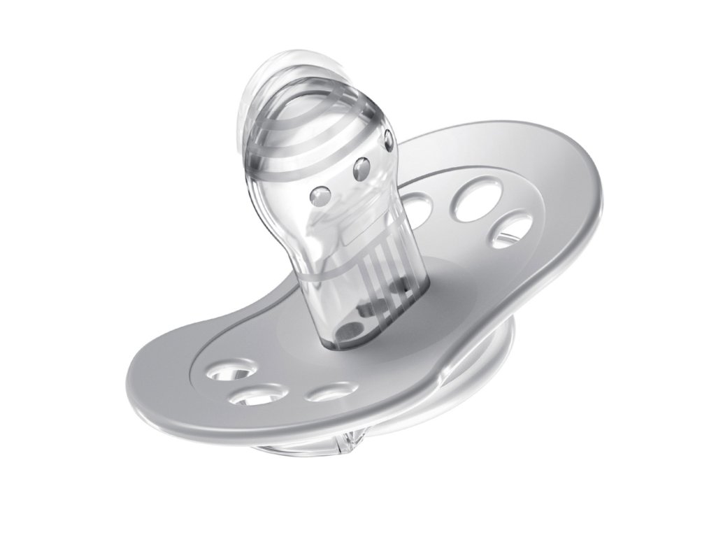 Tvarovaný vykrojený tvar štítku umožňuje dieťaťu voľne dýchať nosom. Je vyrobený z bezpečného materiálu, ktorý neobsahuje BPA Jedinečný okraj štítku je vyrobený zo zdravotníckeho materiálu, je príjemný na dotyk a zabraňuje otlačeniu cumlíka.