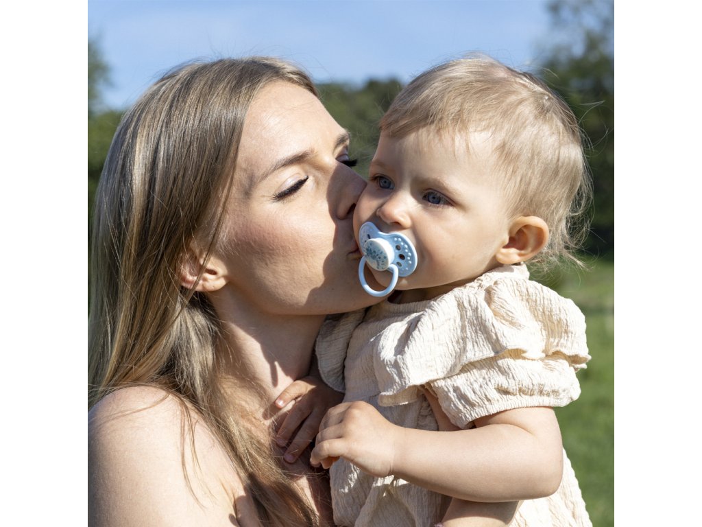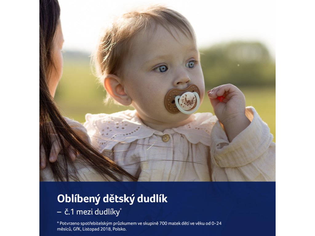 Dynamický cumlík LOVI nenarúša sací reflex bábätka, vývoj reči a zhryzu pri dodržaní ďalších ortondotických a nerologopedických odporúčaní. Tvar silikónovej špičky je prispôsobený prirodzenému saciemu reflexu, silikónová časť je úzka na začiatku pri štítku a rozšírená na konci tak, aby sa špička naťahovala a sťahovala. Vďaka tomu je chránený sací reflex bábätiek a sanie cumlíka nemá nepriaznivý vplyv na dojčenie. Symetrický tvar špičky vychádza z tvaru mamičkinej bradavky naplnenej mliekom, ktorá poskytuje bábätku dôverne známy pocit podobný pocitu sania z prsníka. Špička je sploštená a koniec cumlíka je tak tenký, že umožňuje dieťaťu voľne zatvárať ústa a správne pracovať ďasnami pri saní a zároveň poskytuje dostatok priestoru v ústach pre prácu jazyka, čo znižuje riziko vzniku malooklúzie a vád reči *. Cumlík má svietiaci úchyt v skupinách. jencov vo veku 0-18 mesiacov na špecializovaných regionálnych pediatrických a neurologických klinikách v Poľsku, prevádzkovaných v rámci Národného fondu zdravia, v Katoviciach, Rzeszówe a Bydgoszczi, zahŕňajúce pôrodné asistentky a rodičia, v roku 2010.OCHRANA SACÍHO REFLEXUDynamická špička te.BEZPEČNÉ PRE DOJČENIESymetrický tvar špičky podobný bradavke naplnené mliekom, bábätku poskytuje podobný pocit ako u prsníka mamičky. VOĽNÉ DÝCHANIE NOSOMTvarovaný štítok pod nosom, ktorý uľahčuje voľné dýchanie a polykálne slín rovnako ako u mamičkinho prsníka. BEZPEČNÉ PRE SKUS A VÝVOJ REČIDynamická špička so splošteným koncom sa pri saní dieťaťa natiahne a poskytuje tak dostatok priestoru v ústach pre prácu jazyka a zamedzuje tak vzniku krivých zubov (malooklúzie). ZABRAŇUJE REFLEXU KÚSANIE CUMLÍKAVeľmi ľahký cumlík, ktorý nezaťažuje detské ústa a minimalizuje tak riziko vzniku krivých zubov (malooklúzia). OBĽÚBENÝ DETSKÝ CUMLÍK Potvrdené v spotrebiteľskom prieskume vykonanom na skupine 700 matiek detí vo veku 0-24 mesiacov, GfK, november 2018, Poľsko. ANTIALERGICKÝ Jemný silikón v cumlíku citlivé na vonkajšie podnety.JEMNÝ K POKOŽKE Otvory v štítku umožňujú detskej pokožke voľne dýchať a nedráždia tak pokožku. POHODLNÝ ÚCHYT SVIETIACE V TMĚ né pre dojčeniezabraňuje reflexu hryzenie cumlíkazaisťuje voľné dýchanie a prehĺtanie slinje veľmi ľahký, dieťa sa pri saní nenamáhanenarušuje správny vývoj reči a zhryzu, za predpokladu dodržiavania ortodontických a neurologických odporúčaní silikónová špička sa v ústach dieťaťa nedeformuje svietiacim úchytom BPA-free Nalievanie vriacej vody Sterilizátor Nepoužívajte v mikrovlnnej rúre Nepoužívajte v umývačke riadu Pre bezpečie vášho dieťaťaVAROVANIE! Ťahajte za silikónovú časť cumlíka vo všetkých smeroch. Pri prvých známkach poškodenia alebo opotrebovania materiálu ho ihneď vyhoďte. Používajte iba špeciálne stužky/retiazky na cumlíky, ktoré zodpovedajú norme EN 12586. Nikdy nepripevňujte k cumlíku iné stužky alebo šnúrky, vaše dieťa by sa nimi mohlo uškrtiť.