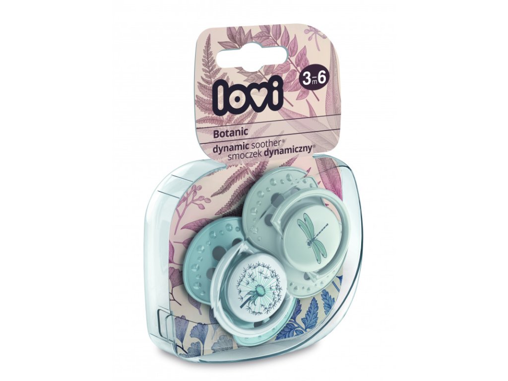LOVI Dudlík silikonový modrý dynamický LOVI BOTANIC 3-6 m 2ks