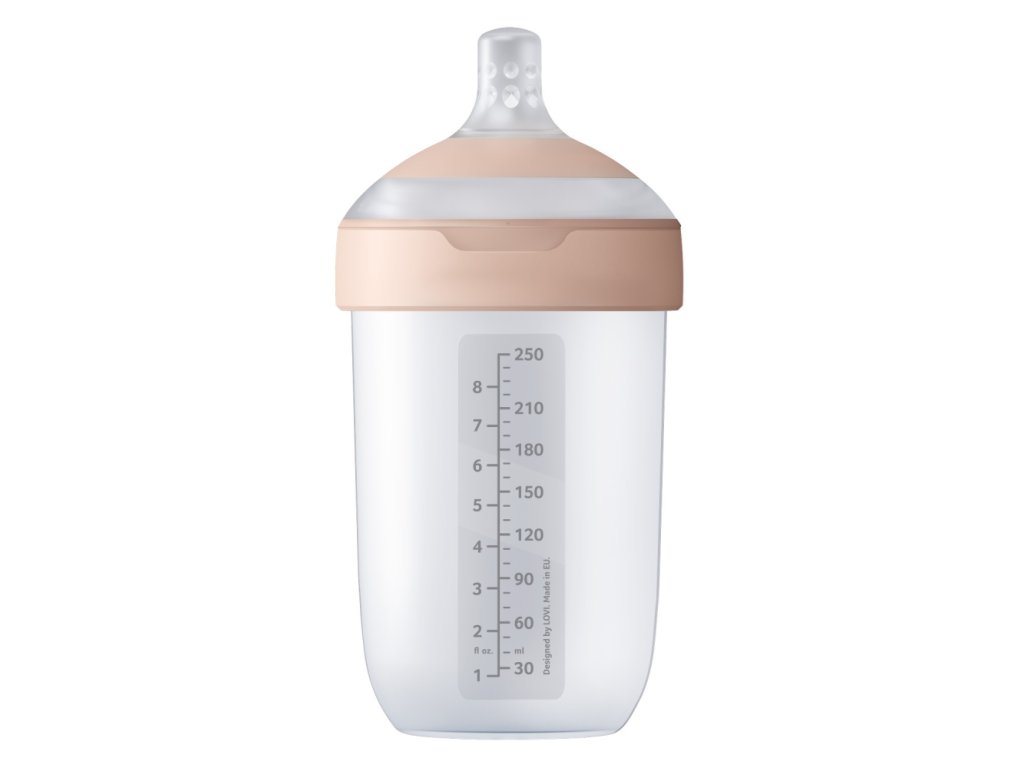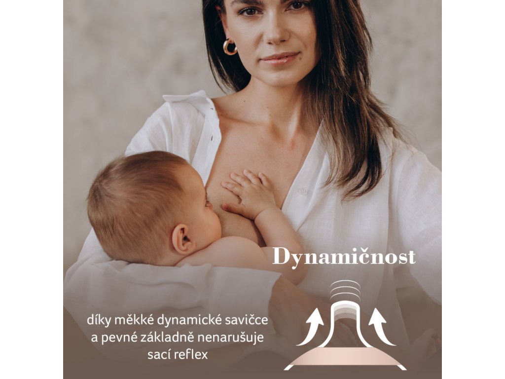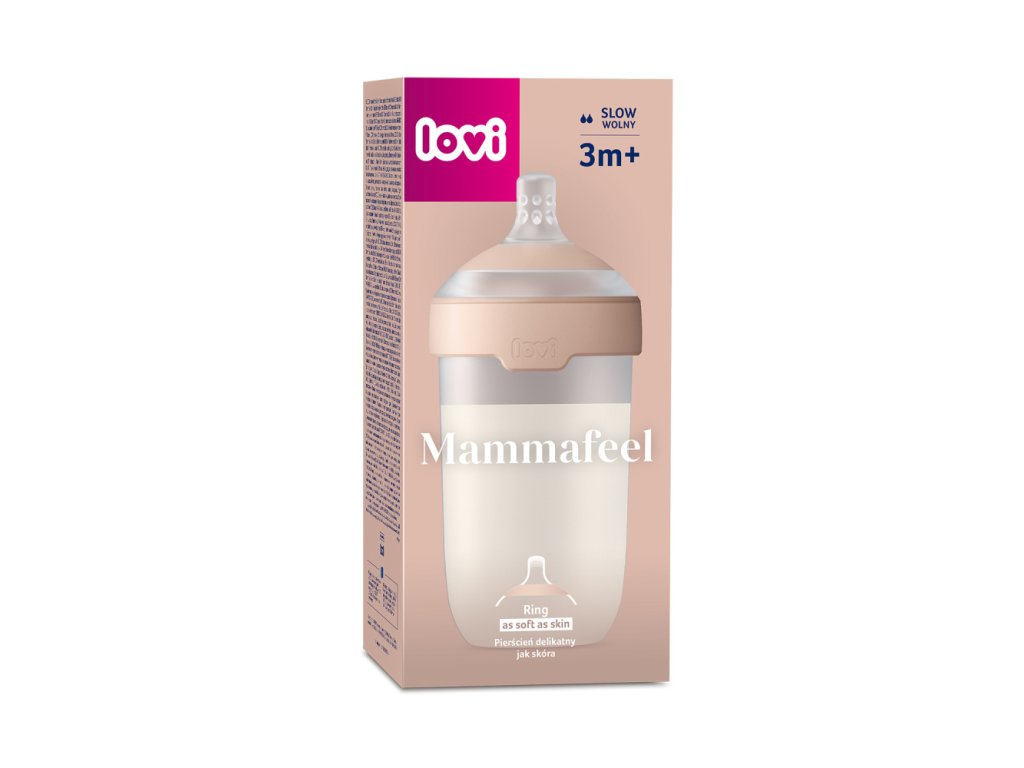 Inovatívna fľaša Mammafeel čo najviac pripomína mamičkine prsia, pokiaľ ide o farbu, tvar, teplo a dynamiku.Takže aj v čase sania mlieka z fľaše môže bábätko cítiť teplo a blízkosť ako u mamy. A mamička, aj keď je potrebné kŕmiť z fľaše, by mohla bez problémov znovu dojčiť alebo kombinovať dojčenie s kŕmením z fľaše. fľaši Mammafeel nielen čo najviac napodobňuje blízkosť a prirodzené sanie z prsníka, ale zároveň nenarúša sací reflex, takže sa bábätko môže voľne vracať k prsníku a cicať mlieko priamo od mamičky. vičke.Tvar a proporcie podľa vzoru mamičkiných pŕs zaisťujú, aby ústa dieťaťa boli umiestnené v správnom uhleNenarušujte sací reflex, vďaka dynamickej cumlíku Antikoliková fľaša - dobre umiestnené pery umožňujú voľné dýchanie nosom, čo znižuje riziko vzniku koliky Prvý cumlík s jedinečnou technológiou dvoch typov silikónu s rôznou pevnosťou 250ml Inovatívna fľaša Mammafeel Tak blízko matkiným prsiam a bezpečné pre dojčenie. Prirodzenosť a elasticita Unikátny, béžovo sfarbený prstenec na cumlíku prirodzene pripomína farbu a mäkkosť dvorca bradavky. ý, profilovaný tvar podľa vzoru mamčiných pŕs a dokonalé proporcie zaisťujú, že ústa dieťaťa sú umiestnené v správnom uhle, pery sú pevne zovreté a dieťa môže voľne dýchať nosom, čo znižuje riziko vzniku koliky.DynamičnosťVďaka mäkkému dynamickému cumlíku a pevnejšej základni nenarúša sací reflex.Vhodný uhol otvorenia úst dieťaťaSprávna podpora detských úst a správne položené pery na cumlíku umožňujú každému dieťaťu pohodlne sať bez toho, aby ústa skĺzli z povrchu cumlíka. vzniku koliky. Bezpečný silikón Unikátna technológia dvoch typov silikónu s rôznou pevnosťou. Viditeľné meradlo Umožňuje kontrolovať množstvo mlieka vypitého dieťaťom. .Pre deti od 3 mesiacov.Možno umývať v umývačke nádoní.Možno použiť mikrovlnnú rúru.Nalievanie vriacej vody.Sterilizácia vo vriacej vode.Návod na použitie (fľaša): Výrobok udržujte v čistote. Pred prvým použitím výrobok rozoberte a vyčistite a potom vložte súčasti na 5 minút do vriacej vody (voda musí mať teplotu varu=100 °C, s ponorenými súčasťami vo vode už ďalej nevarte na zapnutom plynovom/elektrickom sporáku), kvôli zaisteniu hygieny. Pred každým ďalším použitím starostlivo očistite všetky časti fľaše. Všetky časti dôkladne umyte čistou vodou, vrátane oblastí, ktoré môžu byť neviditeľné, ale kadiaľ prechádza tekutina, aby ste odstránili prípadné zvyšky nápoja. Potom sterilizujte v domácom parnom/elektrickom sterilizátore alebo vložte do vriacej vody pre zaistenie hygieny. Po každom použití očistite fľašu a cumlík od zvyškov tekutín, opláchnite a umyte horúcou vodou. Vriaca a tvrdá voda môže spôsobiť vodný kameň. Fľaša sa môže umývať v umývačke riadu (max. teplota 60°C) v hornom koši; po umytí opláchnite pod tečúcou vodou, aby ste dôkladne odstránili zvyšky čistiaceho prostriedku. Pred každým použitím starostlivo skontrolujte. Pri prvých známkach poškodenia alebo oslabenia materiálu výrobok vymeňte za nový. Pri ohrievaní nápoja v mikrovlnnej rúre nezabudnite nechať fľašu otvorenú. Pri mikrovlnnom ohreve dbajte na zvýšenú opatrnosť; môže dôjsť k miestnemu prehriatiu. Ohriaty nápoj vždy premiešajte a pred kŕmením skontrolujte teplotu. Ovocná šťava alebo čaj môžu zanechávať škvrny na cumlíku a fľaši alebo vytvárať vodný kameň, ktorý nemení ich iné vlastnosti. Nevkladajte výrobok do horúcej rúry ani nezahrievajte na plynovom/elektrickom sporáku. Návod na použitie (cumlík): Pred prvým použitím výrobok očistite a potom vložte na 5 min do vriacej vody (voda musí mať teplotu varu = 100 ° C, s ponorenou cumlík vo vode už ďalej nevarte na zapnutom plynovom/el. Pred každým použitím cumlík umyte v teplej vode, aby bola zaistená hygiena. Pri umývaní je potrebné venovať zvláštnu pozornosť tomu, aby nedošlo k poškodeniu odvzdušňovacieho ventilu. Cumlík sa neodporúča umývať v umývačke, pretože umývacie prostriedky môžu výrobok poškodiť. Cumlík je možné sterilizovať v mikrovlnnom/parnom sterilizátore alebo pomocou sterilizačnej kapsule, ktorú je možné zakúpiť samostatne s prídavným cumlíkom na fľašu. Nepoužívajte žiadne antibakteriálne látky. Skontrolujte cumlík pred každým použitím a zatiahnite za cumlík všetkými smermi. Zvlášť keď má dieťa zuby. Pri prvých známkach poškodenia alebo oslabenia materiálu výrobok vyhoďte. Neuťahujte príliš skrutkovaciu objímku fľaše, pretože by to mohlo narušiť ventiláciu cumlíka. Vždy skontrolujte tesnosť. Pokiaľ dôjde k úniku tekutiny, opäť odskrutkujte uzáver a skontrolujte, či je cumlík správne nasadený. Prietokové otvory cumlíka nikdy žiadnym spôsobom nezväčšujte, mohlo by dôjsť k poškodeniu cumlíka. Nenechávajte cumlík na priamom slnečnom svetle alebo teple ani ho nenechávajte v dezinfekčnom prostriedku („sterilizačnom roztoku“) dlhšie, než je odporúčané, pretože to môže cumlík poškodiť. Odporúča sa vymeniť cumlík max. po 2 mesiacoch používania. Výrobok nie je hračka. Uschovajte návod na neskoršie použitie. Kód šarže je umiestnený na obale. Pre bezpečnosť a zdravie Vášho dieťaťa UPOZORNENIE! Neustále a dlhodobé sanie tekutín spôsobuje zubný kaz. Pred kŕmením vždy skontrolujte teplotu jedla. Pri prvom náznaku poškodenia alebo opotrebenia výrobok vyhoďte. Nepoužívané súčasti výrobku uchovávajte mimo dosahu detí. Nikdy nespájajte so šnúrami, stuhami, šnúrkami alebo s voľnými časťami oblečenia, mohlo by dôjsť k uškrteniu dieťaťa. Nikdy nepoužívajte cumlík na kŕmenie ako bežný cumlík. Používajte tento výrobok vždy pod dohľadom dospel