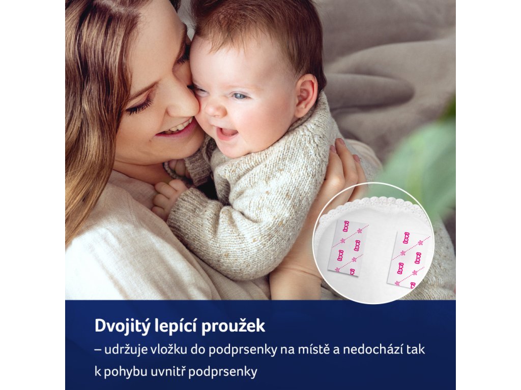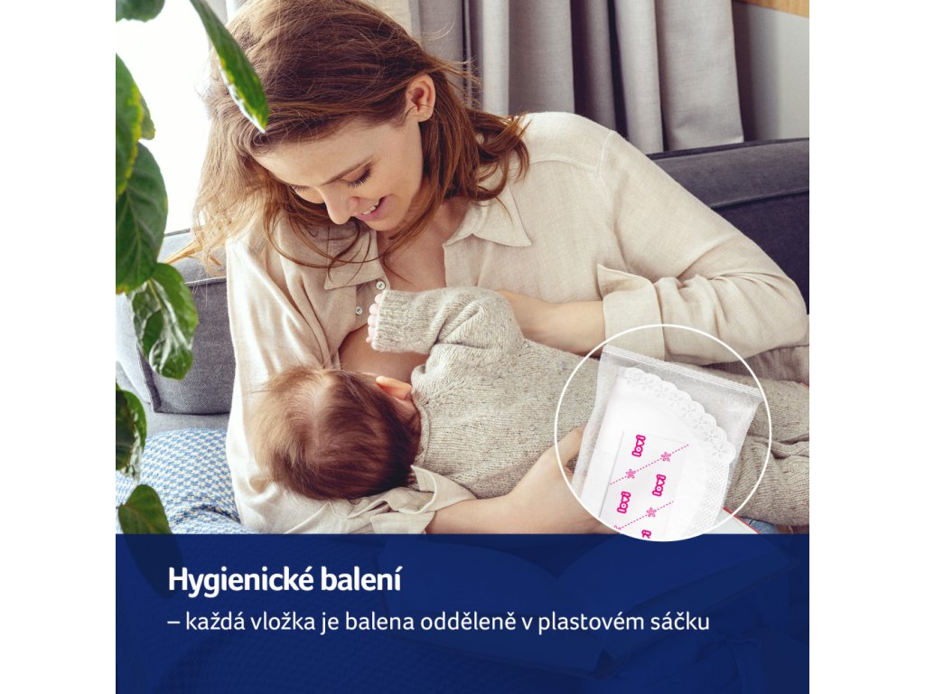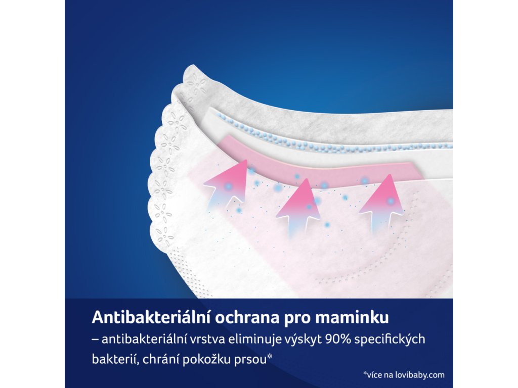 Vložky do podprsenky LOVI Discreet Elegance poskytujú mamičke spoľahlivú antibakteriálnu ochranu. Špeciálna antibakteriálna vložka s prídavkom nano-striebra eliminuje niektoré baktérie a chráni pokožku pŕs pred ich pôsobením*, čo zaisťuje ešte väčšiu hygienu a bezpečnosť pri kŕmení. V balení 20ks. Antibakteriálne vložky do podprsenky sú vysoko absorpčné, gélová vložka absorbuje vlhkosť a odvádza ju od pokožky, čím zaisťuje pocit sucha vo dne aj v noci. Priedušná štruktúra umožňuje voľné prúdenie vzduchu, takže citlivá pokožka pŕs nie je vystavená treniu. , takže sa perfektne prispôsobí tvaru pŕs. Vďaka dvojitému lepiacemu prúžku držia vložky v podprsenke na správnom mieste a zabraňujú pohybu vložky. Každá vložka do podprsenky je z hygienických dôvodov samostatne balená. *Ružová časť nano-striebra má antibakteriálne vlastnosti; jeho inhibičný koeficient pre Staphylococcus aureus, E. coli a kvasinky Candida albicans je najmenej 90 %, ako potvrdzuje správa SGS-CSTC Standards Technical Services (Shanghai) Co., Ltd. Antibakteriálna ochrana pre Vás minimálne z 90% a chráni pokožku pŕs pred ich pôsobením*. EXKLUZÍVNA OCHRANA zaistí pocit sucha vo dne aj v noci. pokožka nie je vystavená treniu.DOSTUPNÉ V TROCH FARBIÁCHs elegantnou jemnou čipkou, možno ladiť k rôznym farbám spodnej bielizne.DVOJITÝ LEPIACI PRÚŽOKdrží vložku do podprsenky na mieste a zabraňuje tak jej pohybu vo vnútri podprsenky. ANATOMICKY TVAROVANÉ sú pohodlné a prispôsobia sa tvaru prsníka. Jednotlivo zabalené každá vložka do podprsenky je z hygienických dôvodov samostatne balená v sáčku. tvarvely priedušnéjemné k pokožke balené po 1 ks pre zachovanie hygienyNávod na použitie: Vložky do podprsenky pravidelne vymieňajte, použitú vložku do podprsenky vyhoďte do koša.Upozornenie! Výrobok nie je hračka. Uchovávajte mimo dosahu dieťaťa. Informácie o výrobku uchovajte pre prípadné neskoršie použitie. Číslo série je uvedené na obale.