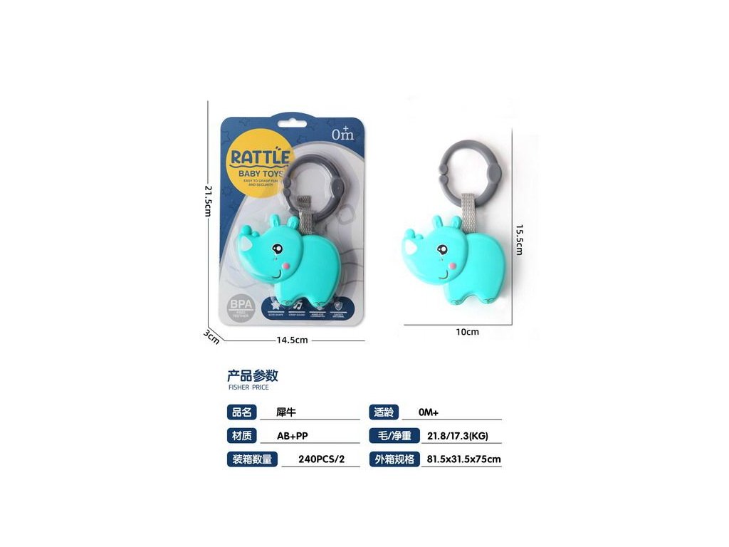 Hrkálka nosorožec. Rozmery 14,5x3x21,5 cm.Dodatočné parametre