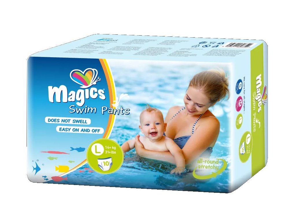 Plienky do vody malé ponúkajú vysoký komfort pri nosení a spoľahlivú ochranu proti pretečeniu. Veľmi mäkký, elastický materiál a látke podobný povrch je šetrný k detskej pokožke. Plienky do vody vo vode nenapučiavajú a sú určené na jednorazové použitie. Pre rýchle vyzlečenie je možné ich po stranách roztrhnúť.