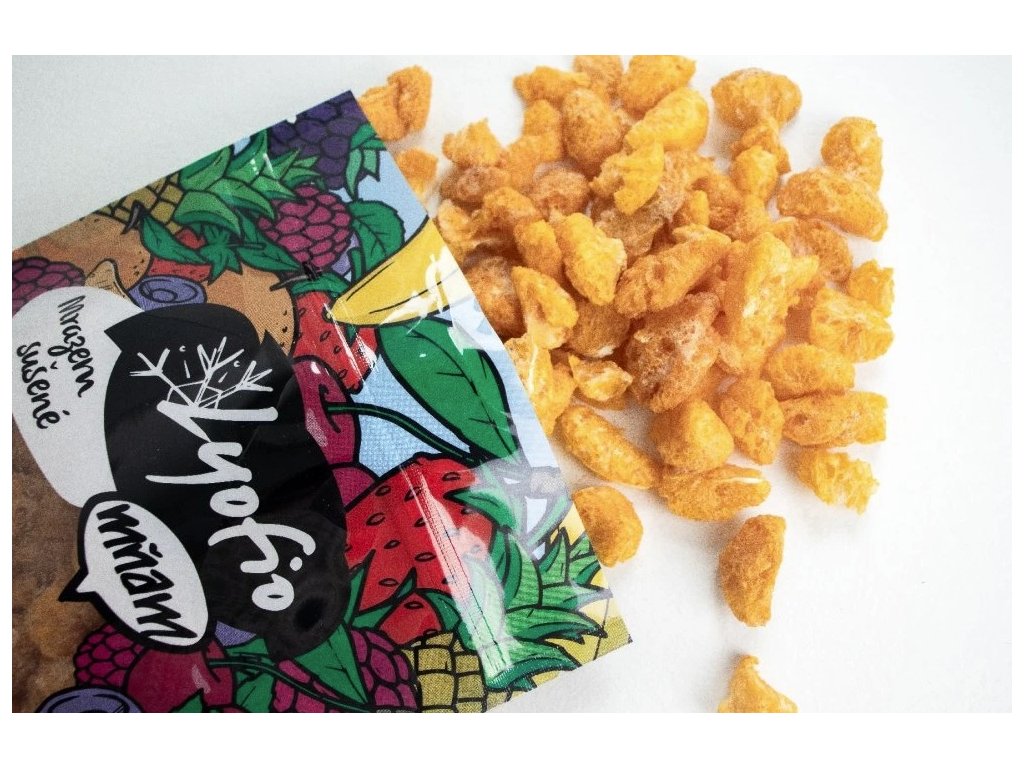Nie vždy máte to šťastie zohnať čerstvú sladkú mandarínku bez kôstok. Tú lyofilizovanú môžete mať vždy po ruke. Vďaka lyofilizácii si vychutnáte sladkú chuť mandarínok, ktorá je dokonca intenzívnejšie ako za čerstva . Lyofilizované mandarínky sú ľahučké, nádherne chrumkajú av špajze vydržia takmer večnosť. Teda aspoň teoreticky, pretože akonáhle ochutnáte jednu, rýchlo zmizne celé vrecko.