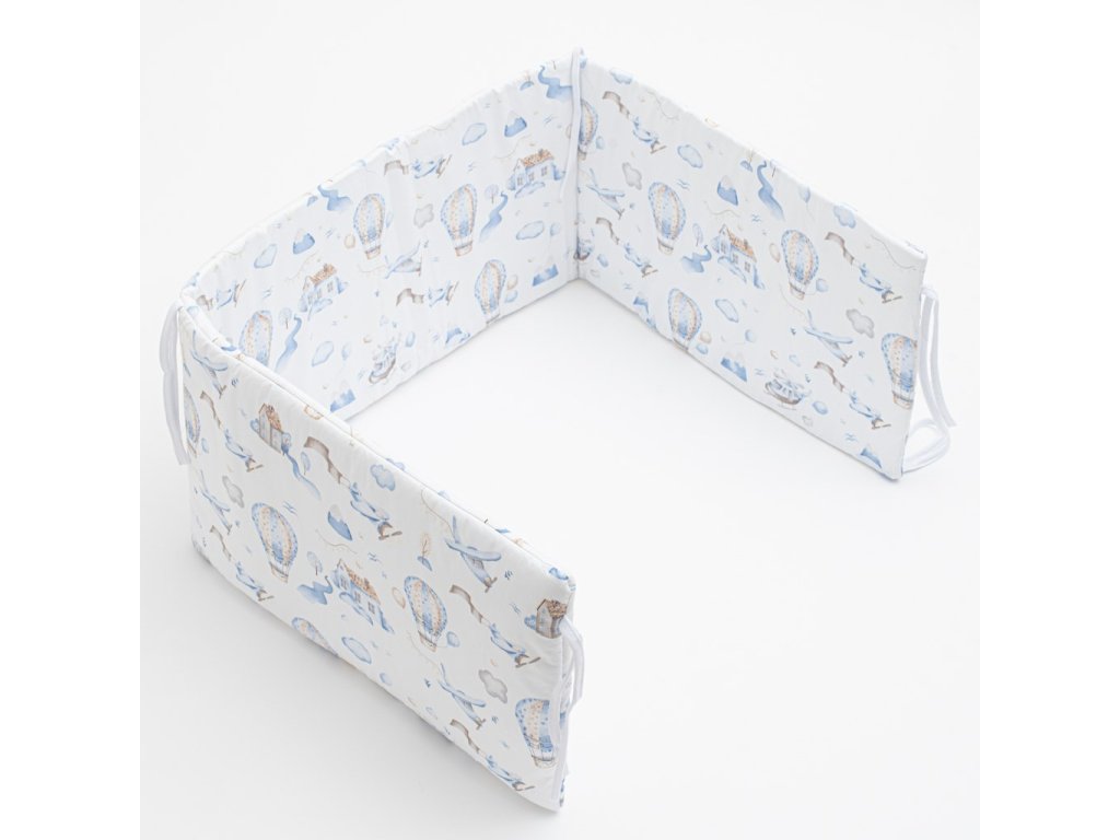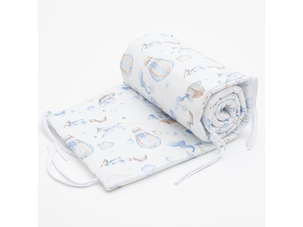 Praktický mantinel do postieľky New Baby Romance s potlačou rozprávkového dobrodružstva v oblakoch. Je vyrobený z mäkkého, príjemného materiálu. Zloženie: 100% bavlna. Výplň: 100% polyester. Upevnenie k postieľke pomocou stuh. Rozmer: cca 150 cm.Tieto výrobky sú bezpečné, pretože: