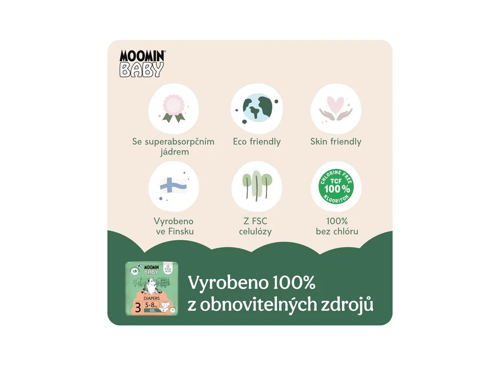 Moomin Baby 3 Midi 5–8 kg (48 ks), eko plienky