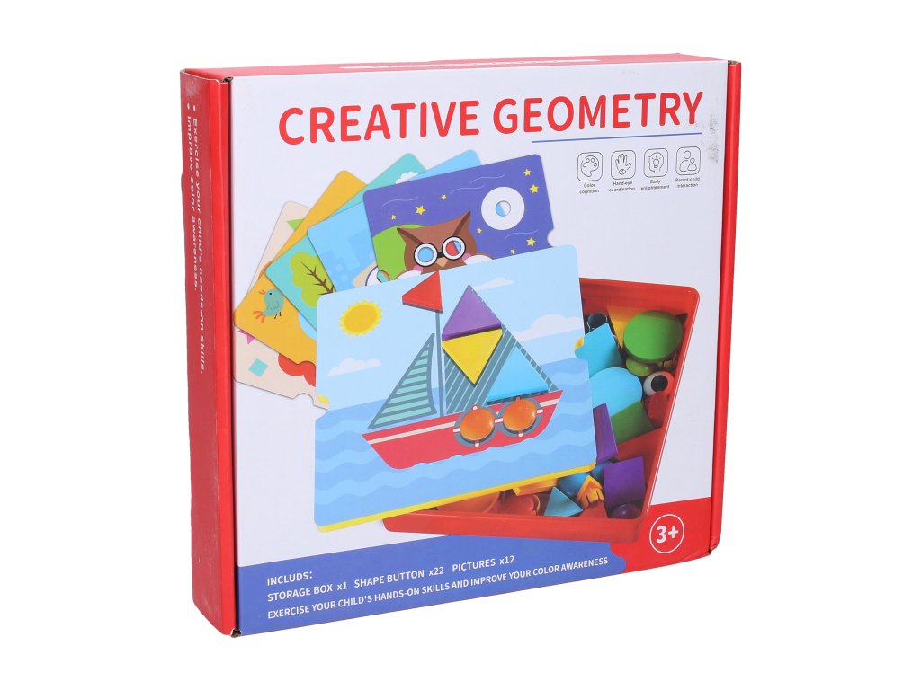 Mozaika geometrické tvary . Veľkosť 25cm. Balenie obsahuje krabičku s podložkou a šablónami na vkladanie tvarov. 22 tvarov, 12 obrázkov(šablón)Dodatočné parametre