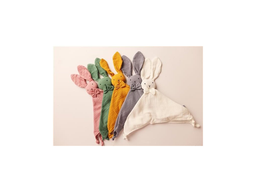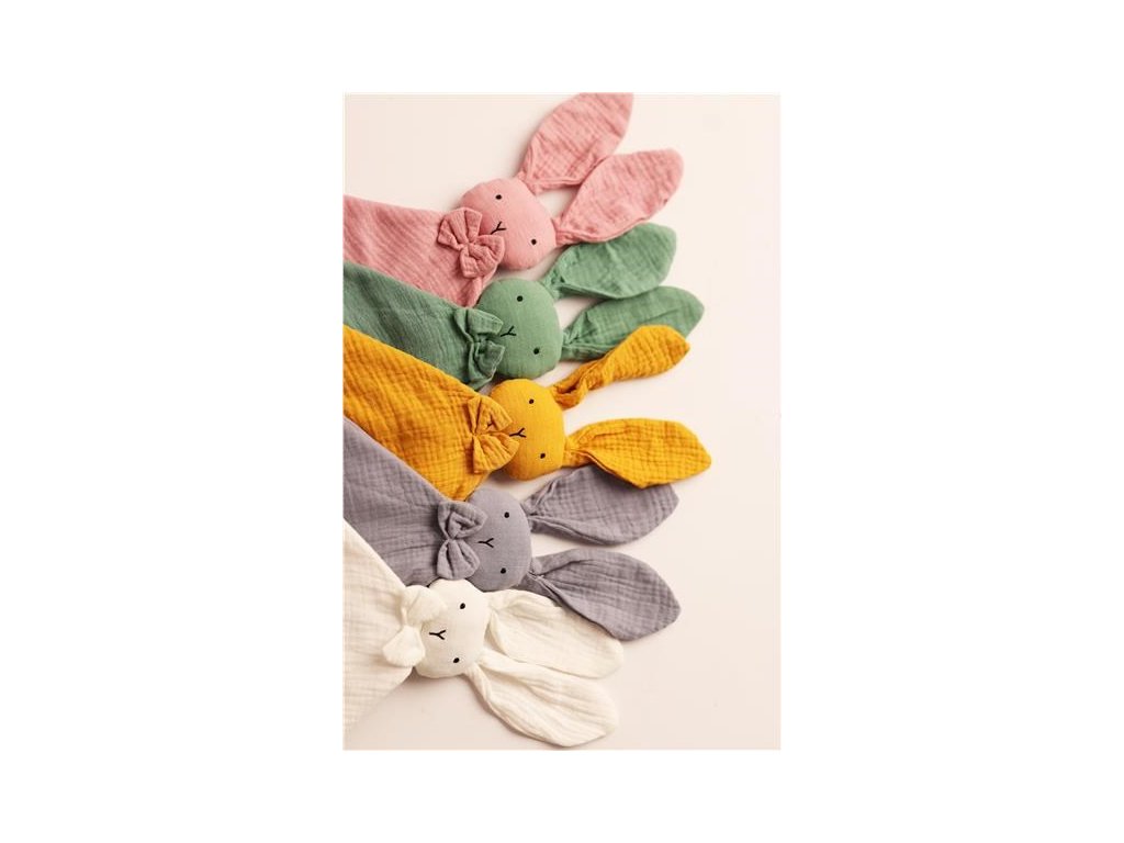Mušelínový zaspávač New Baby Rabbit je ideálna plyšová hračka pre naše bábätko od prvých dní života. Vyrobené z mäkkej a na dotyk príjemnej mušelínovej tkaniny. Poskytuje pocit bezpečia a uľahčuje zaspávanie. Mäkký vzhľad a estetické farby zaisťujú estetický a minimalistický dizajn. Plyšová hračka sa dokonale hodí k našim ďalším mušelínovým výrobkom a vytvára tak krásnu sadu, ktorú je možné venovať ako darček na detskú oslavu.