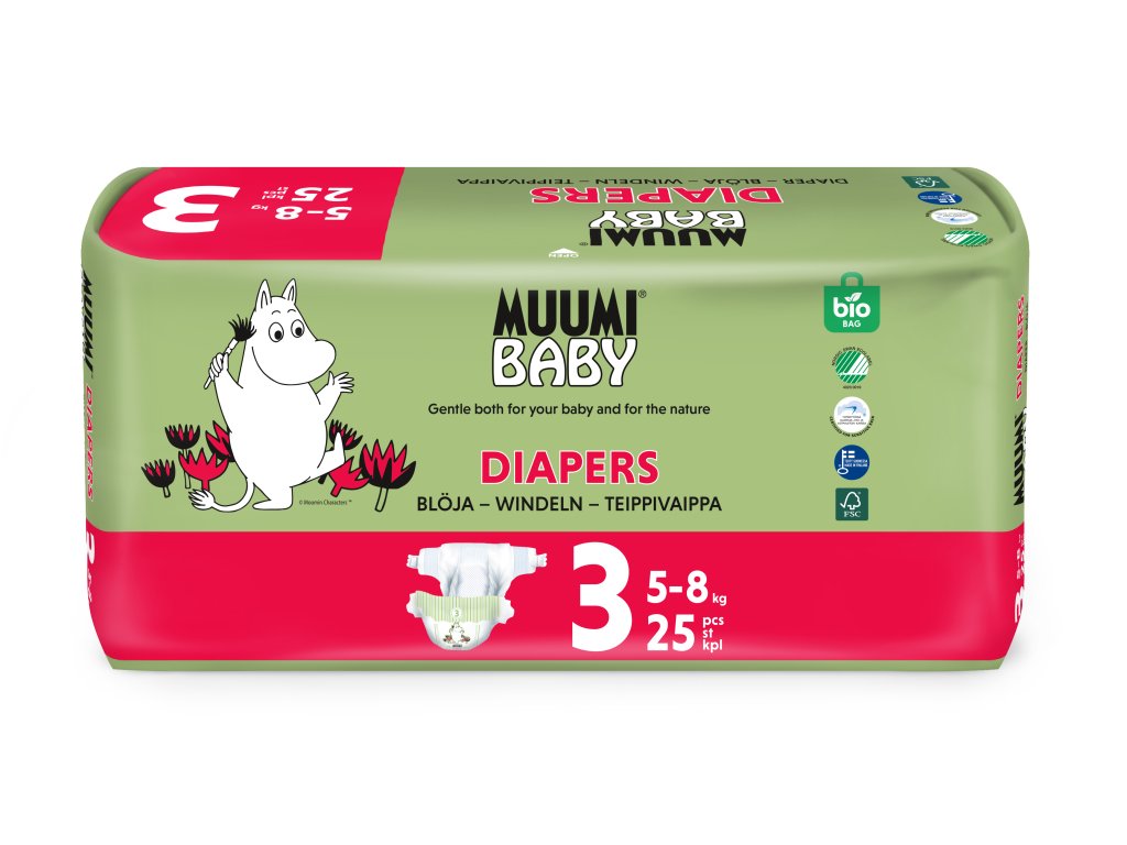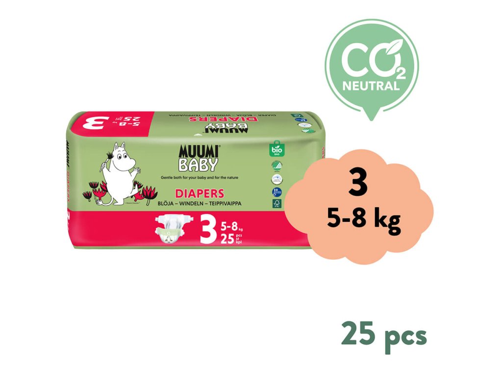 Muumi Baby 3 Midi 5–8 kg (25 ks), eko plienky