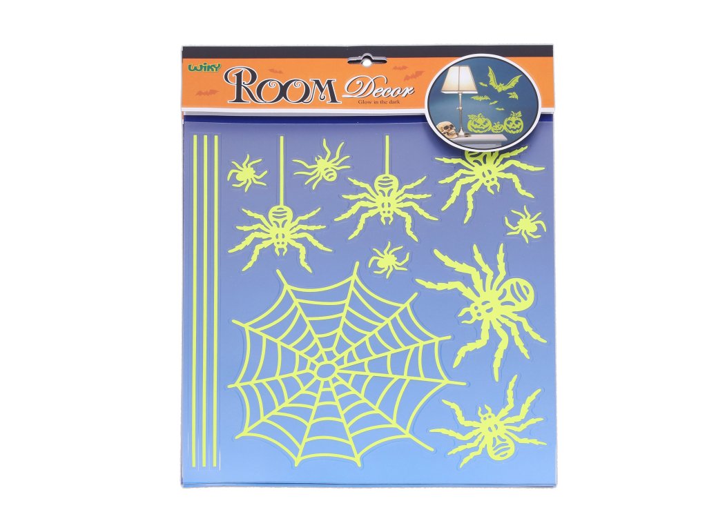 Nálepky na stenu svietiacu v tme o veľkosti 38x31 cm Pavúky HALLOWEEN.Dodatočné parametre