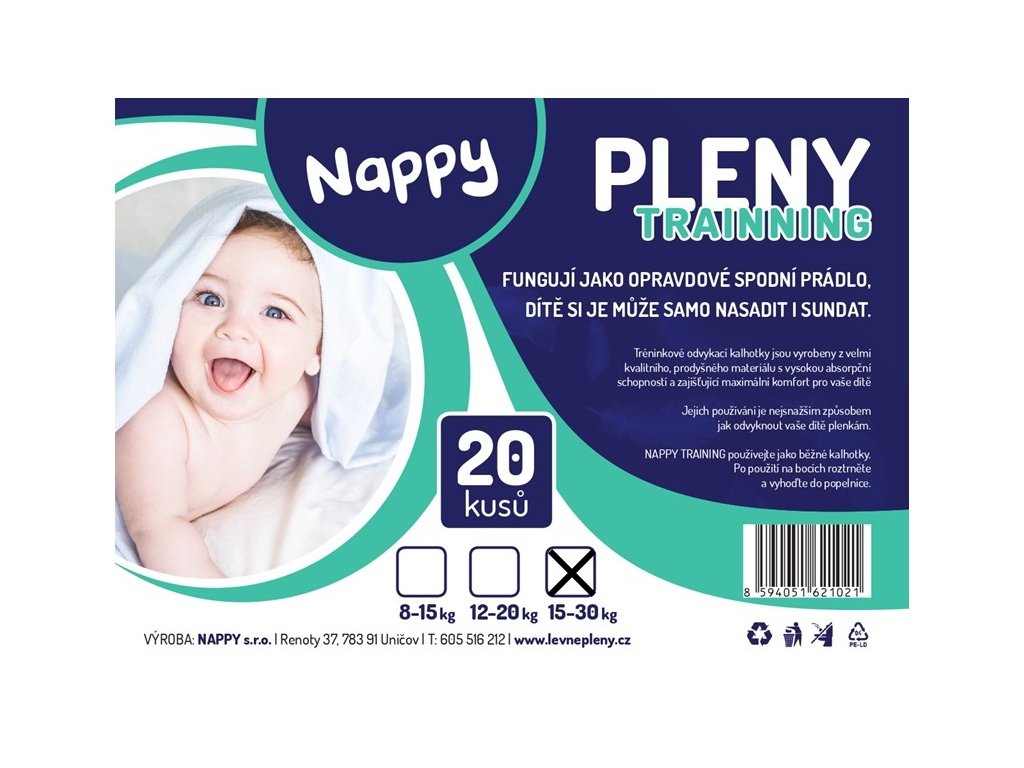 Plienkové nohavičky NAPPY sú ručne prebaľované v chránenej dielni zdravotne znevýhodnenými pracovníkmi. Jedná sa o plienkové nohavičky rôznych značiek , ale rovnakého typu, výnimočne aj eco nohavičky , ktoré boli z nejakého dôvodu vyradené firmou, buď neodobratím zákazníka, zmenou obalov, nadmernou výrobou, poškodením kartónov pri manipulácii atď. alebo pre menšie vady, napr. chyba tlače veľkosti na plienke, mierna nesúmernosť. Všetky plienkové nohavičky, sú prezreté, prebalené z pôvodných obalov a predávané pod značkou NAPPY.