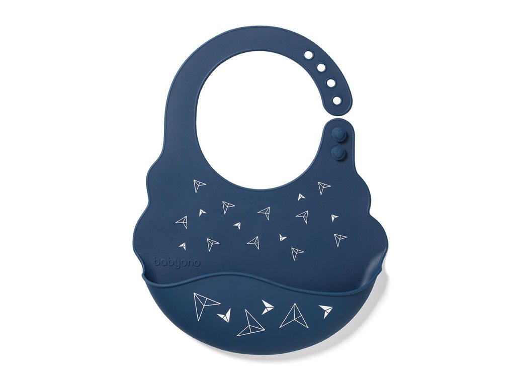 Nastaviteľný silikónový podbradník s vreckom Baby Ono tmavo modrý