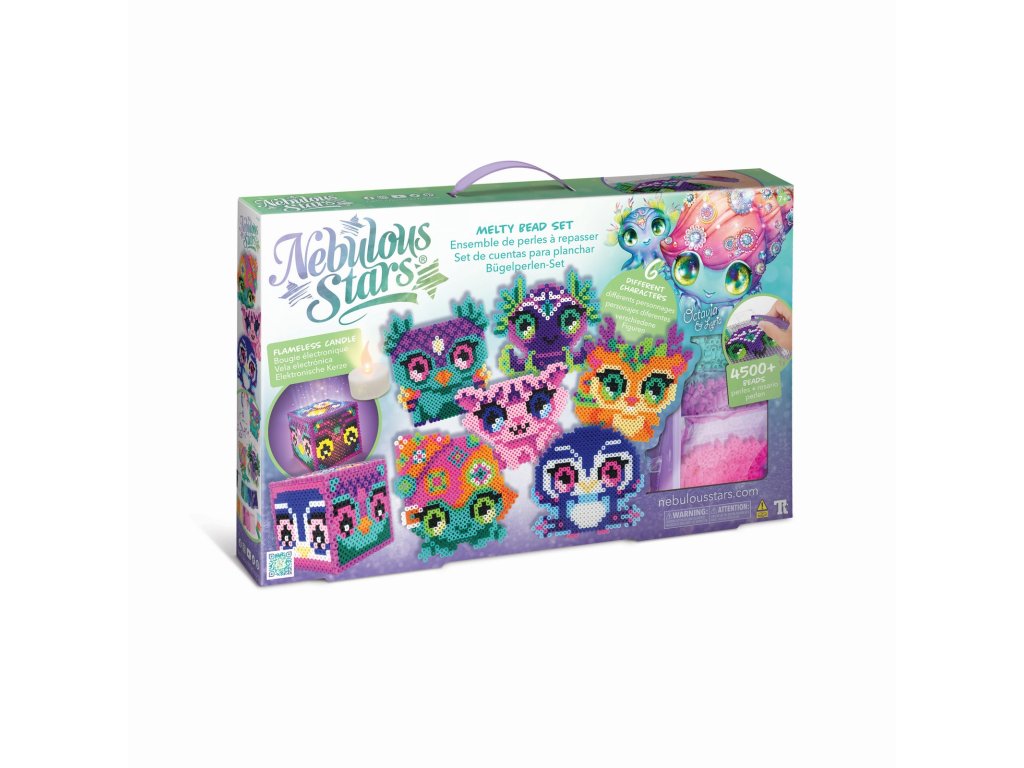 Nebulous Star Sada tavných pixelových korálikov. Obsah balenia: doska na tavné korálky, 11 kariet so vzorom, 4500+ tavných korálok, LED sviečka, plastová pinzeta, nažehľovací papier, príbeh zvieratiek Animoulous, pokyny.Dodatočné parametre