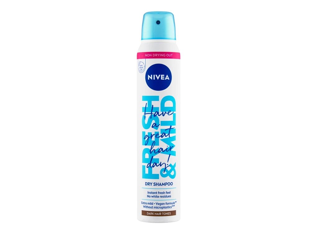 Nivea® Suchý šampón pre tmavší tón vlasov - zanechá vo vlasoch svieži pocit bez bielych stôp. Bez mikroplastov - na základe definície UNEP. Vegánske zloženie - neobsahuje ingrediencie živočíšneho pôvodu. Ľahší obal - v porovnaní s predchádzajúcou verziou.
