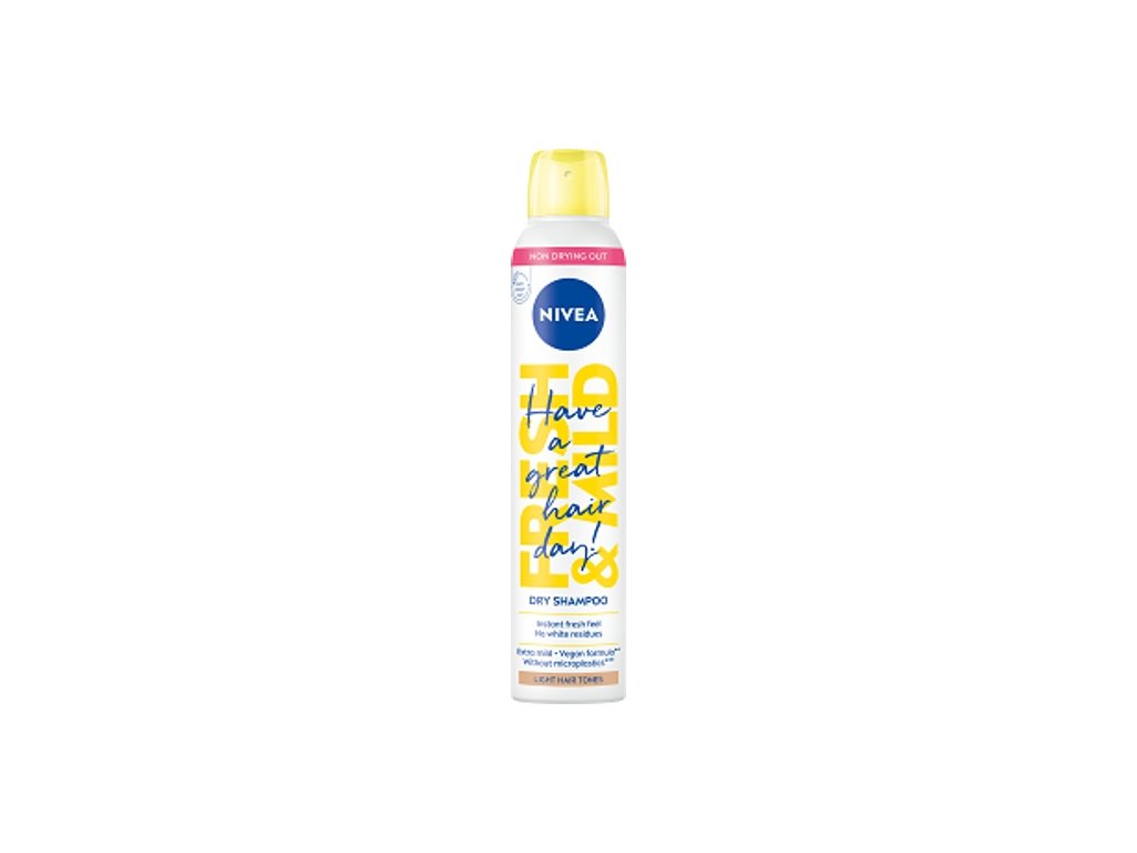 Nivea® Suchý šampón pre svetlý tón vlasov - zanechá vo vlasoch svieži pocit bez bielych stôp. Bez mikroplastov - na základe definície UNEP. Vegánske zloženie - neobsahuje ingrediencie živočíšneho pôvodu. Ľahší obal - v porovnaní s predchádzajúcou verziou.