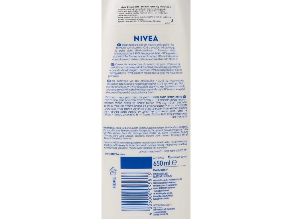 Nivea sprchový gel Cream Soft: | 650ml |