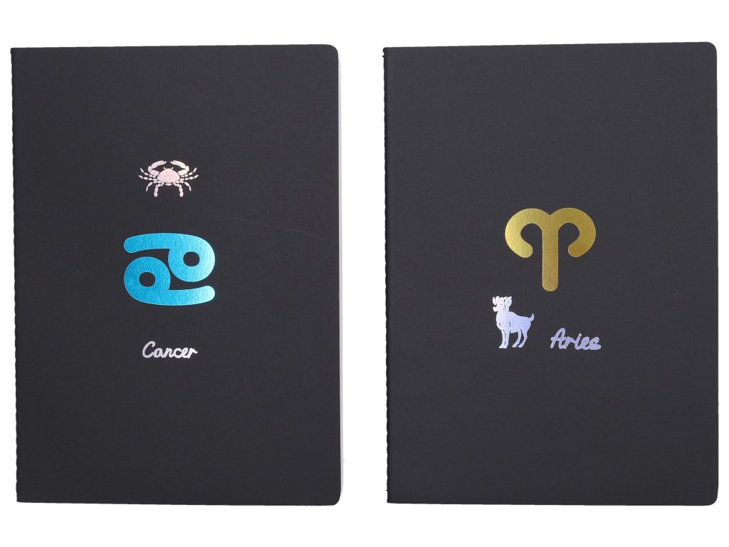 Notes linajkový o veľkosti 18,5x25,5cm. 34 bielych linkovaných strán. 12 znamení zverokruhu.Dodatočné parametre