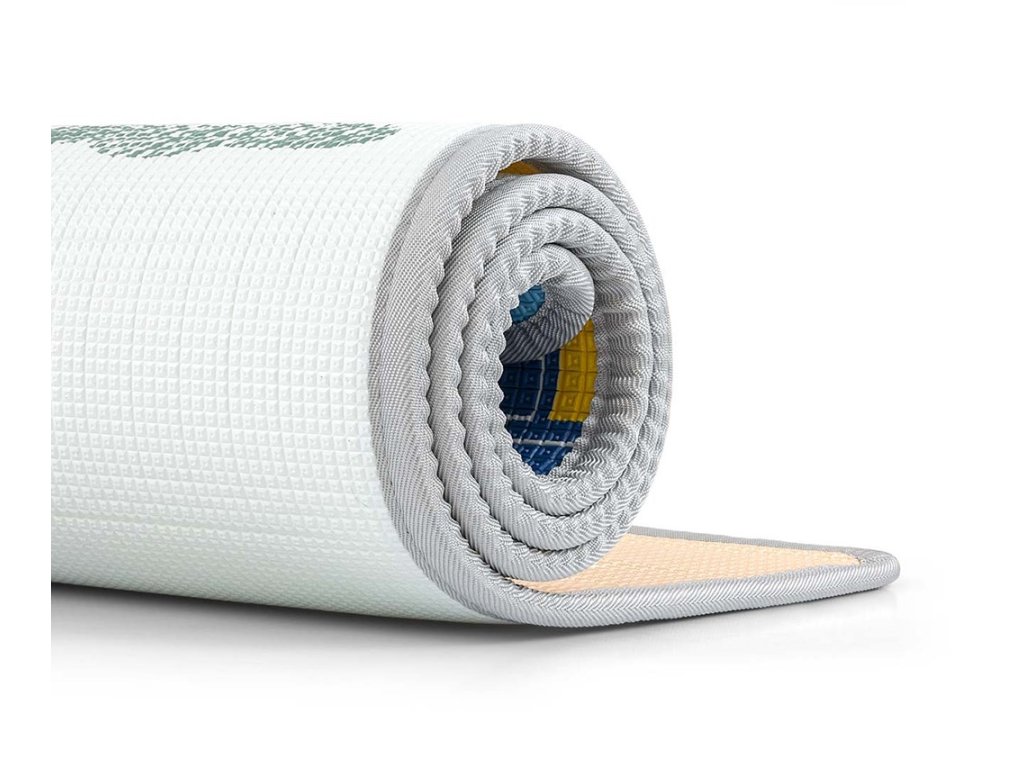 Kreatívne a farebné vzory podložky povzbudzujú aktivitu, najmä v raných fázach vývoja. Plochý povrch penovej podložky umožňuje vášmu dieťaťu modelovať stabilný trup, prirodzene a voľne otáčať hlavou, precvičovať rotácie, opierať sa, správne zaťažovať nohy a stabilne a bezpečne sedieť. Rolovacia penová podložka KINDER je bezpečným a pohodlným miestom na hranie. Produkt poskytuje vynikajúcu izoláciu od studených podláh a vďaka nepremokavému povrchu sa ľahko čistí a je ideálnym doplnkom do každej izby. Jeho vysoká flexibilita zaisťuje vynikajúce tlmenie nárazov v prípade pádu. Je možné ho použiť aj vonku na hladkom povrchu. Naša podložka je tiež ideálna na cesty.