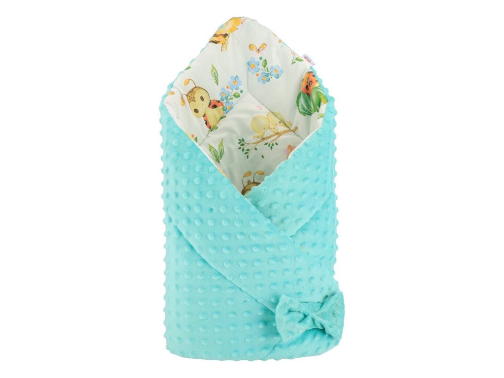 Nádherná obojstranná mäkkučká zavinovačka z Minky New Baby. Zavinovačka je vyrobená z dvoch typov tkanín a je zdobená krásnou mašličkou. Jedna strana je veľmi mäkká a na dotyk príjemná, hebká Minky látka s výstupkami na stimuláciu senzomotoriky a druhá strana je 100% bavlna potlačená krásnym detským vzorom. Je ideálny ako pre bábätká od narodenia, tak aj pre väčšie deti ako deka na hranie, do kočíkov alebo na von. Zavinovačka umožňuje pohodlné držanie bábätka počas kŕmenia a spania. Je vyrobená z veľmi kvalitného materiálu, ktorý nepúšťa farbu a nevyvoláva alergické reakcie. Zavinovačka má zapínanie na suchý zips. Bábätko sa v našej zavinovačke bude cítiť jednoducho úžasne. Prudukt českej značky. Rozmery: cca 75x75 cm. Zloženie - povlak 100% bavlna a Minky 100% polyester. Výplň - 100% antialergické vlákno.Tieto výrobky sú bezpečné, pretože: