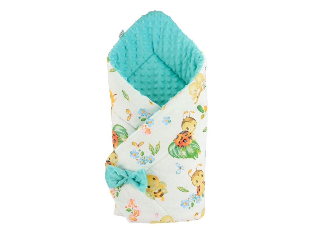Obojstranná zavinovačka z Minky New Baby 75x75 cm včielky a lienky zelená