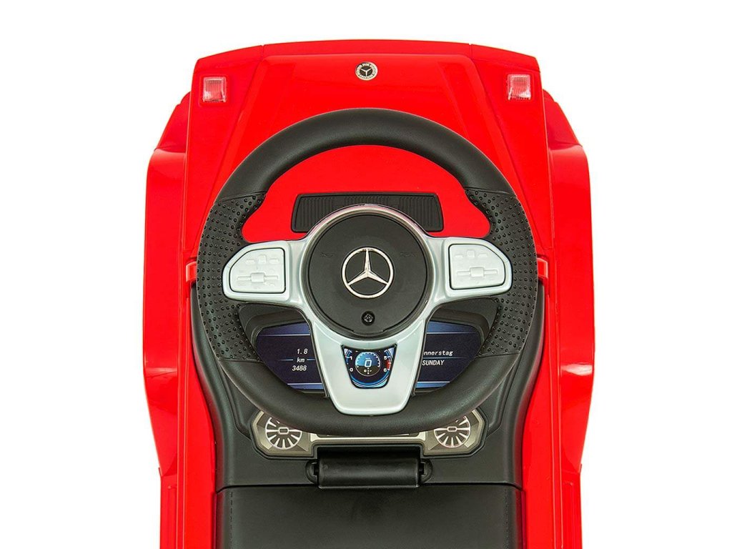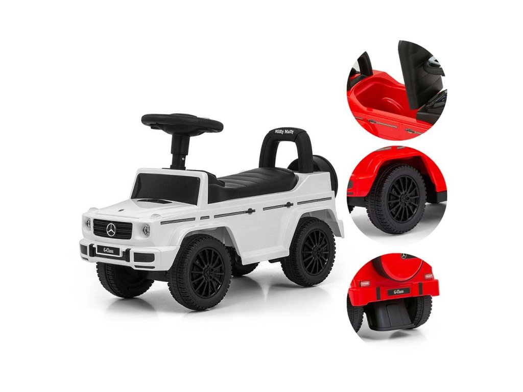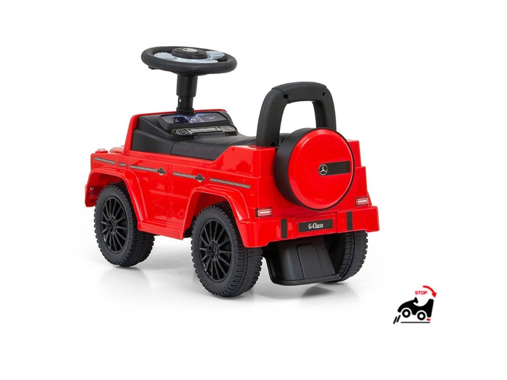 Detské odrážadlo MERCEDES G350d je vyrobené v licencii koncernu MERCEDES. Váš malý pretekár či pretekárka sa v ňom bude cítiť ako v naozajstnom džípe. Odrážadlo je vyrobené s dôrazom na každý detail a kvalitu použitých materiálov. Jeho vzhľad upúta pozornosť nielen každého dieťaťa, ale aj rodičov. Odrážadlo pomáha rozvíjať motorické schopnosti dieťaťa a Váš malý pretekár či pretekárka si s ním užije množstvo zábavy a zábavy. Autíčko má na trojramennom volante tlačidlá vydávajúce rôzne melódie, zvuk motora alebo húkačku. Je určené ako pre najmenšie deti, ktoré už vedia sedieť, tak aj pre deti, ktoré sa už naučili chodiť. Odrážadlo má otočné predné kolesá a široké a komfortné sedadlo s úložným priestorom. Batérie nie sú súčasťou balenia (2x AA 1.5V).