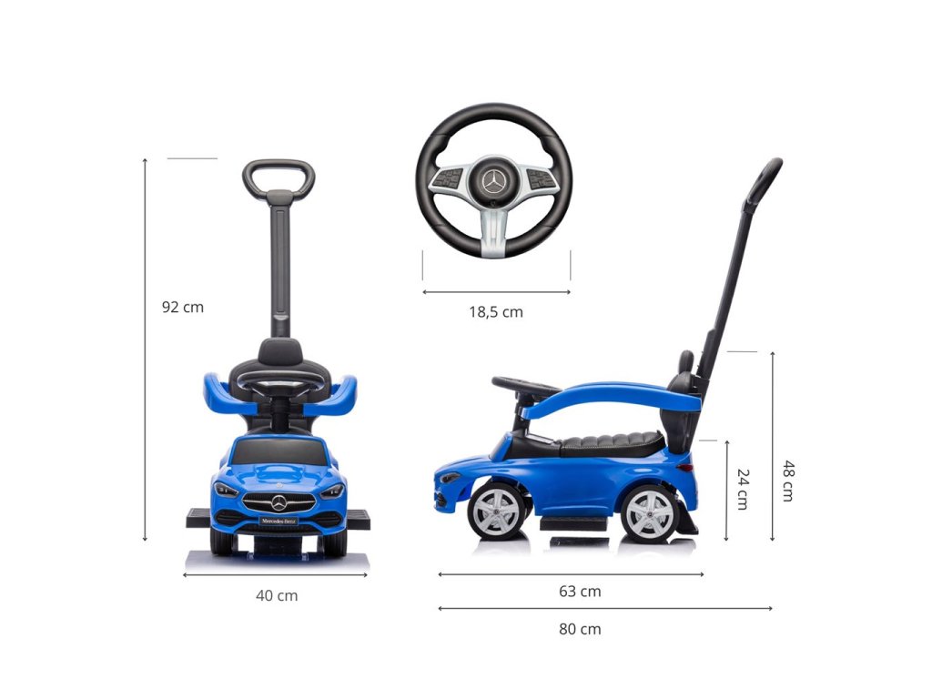 Mercedes C-Class odrážadlo s rukoväťou je elegantná a veľmi realistická hračka, ktorá poskytuje dieťaťu nielen veľa zábavy, ale taktiež podporuje jeho rozvoj. Navrhnuté s ohľadom na najmenších fanúšikov automobilov, toto miniatúrne autíčko Mercedes priťahuje pozornosť svojim vzhľadom a dôrazom na detaily. Deti sa môžu cítiť ako skutoční vodiči, objavovať radosť z prvých „jazd“ a spoznávať okolie. Toto odrážadlo predstavuje jedinečnú kombináciu klasického štýlu, pohodlia a funkčnosti, ktorá sa rýchlo stane obľúbenou hračkou každého dieťaťa.