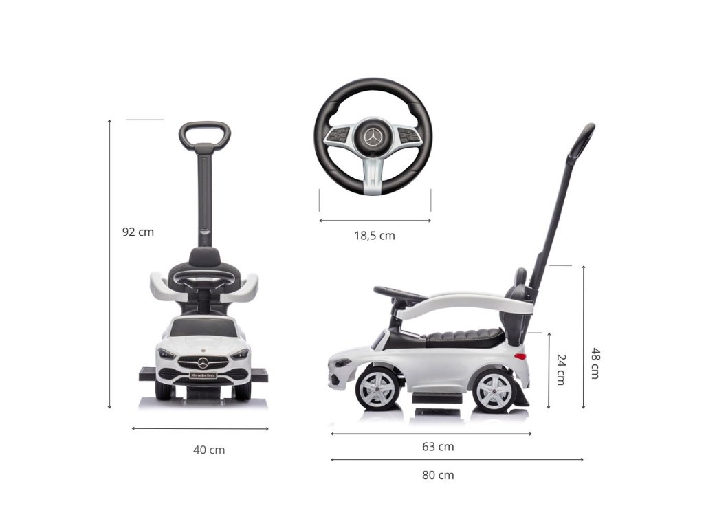 Mercedes C-Class odrážadlo s rukoväťou je elegantná a veľmi realistická hračka, ktorá poskytuje dieťaťu nielen veľa zábavy, ale taktiež podporuje jeho rozvoj. Navrhnuté s ohľadom na najmenších fanúšikov automobilov, toto miniatúrne autíčko Mercedes priťahuje pozornosť svojim vzhľadom a dôrazom na detaily. Deti sa môžu cítiť ako skutoční vodiči, objavovať radosť z prvých „jazd“ a spoznávať okolie. Toto odrážadlo predstavuje jedinečnú kombináciu klasického štýlu, pohodlia a funkčnosti, ktorá sa rýchlo stane obľúbenou hračkou každého dieťaťa.