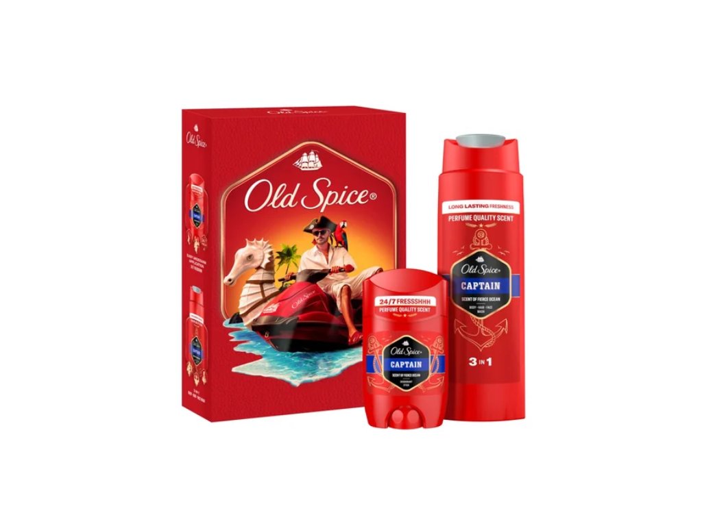 Old Spice Xmass sada Captain tuhý dezodorant a sprchový gél 50 ml + 250 ml
