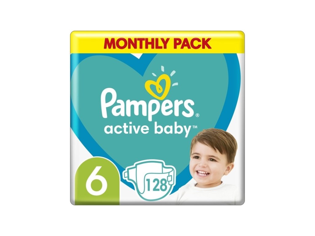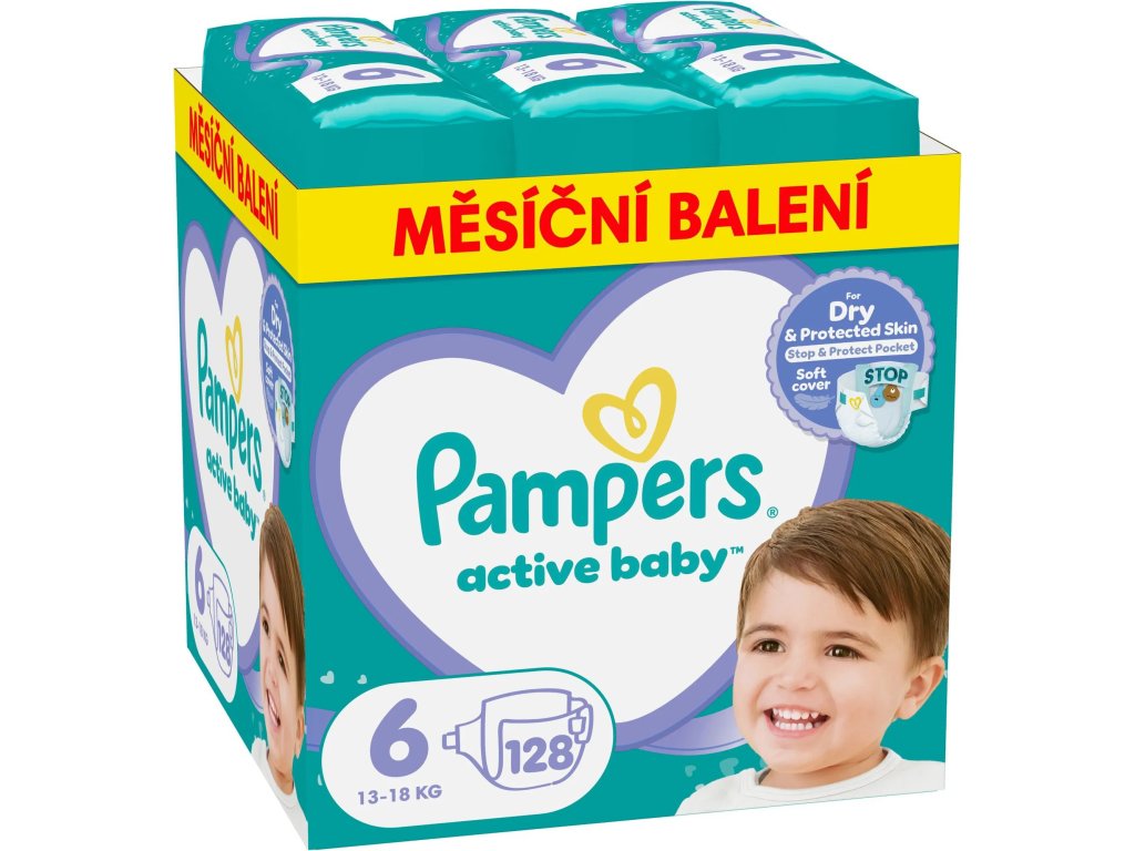 Pampers Active baby 6 XL (13–18 kg) 128 ks - mesačné balenie