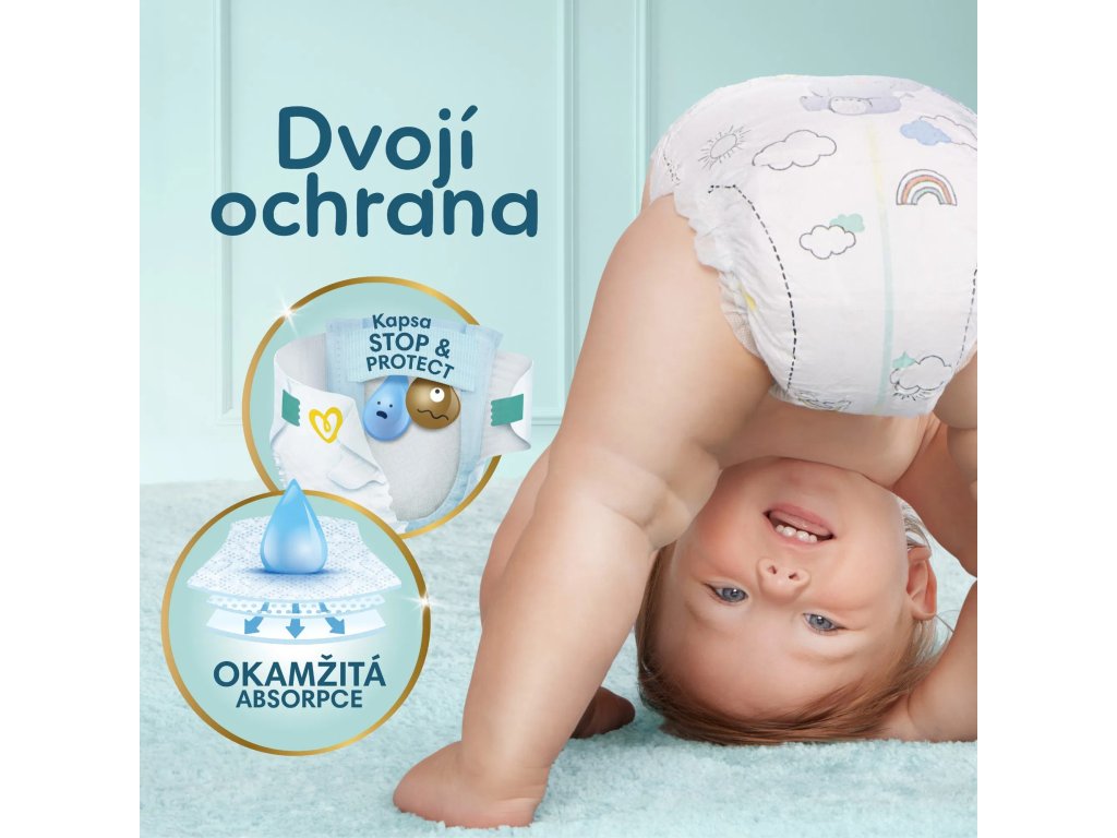 Plienky Pampers okamžite absorbujú tekutinu, čím zaistí až 12 hodín v suchu.