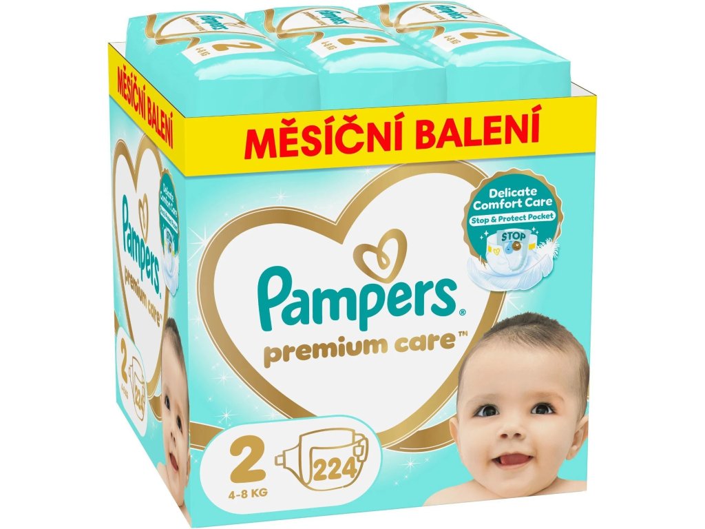 Pampers Premium Care 2 (4-8kg) 224 ks - mesačné balenie