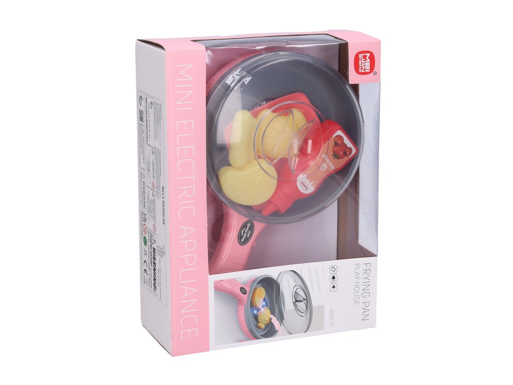 Panvica elektronická. Veľkosť 27,5x16x7 cm. Počas vyprážania potraviny menia farbu. Obsahuje panvicu, pokrievku, tanierik, kečup, 4ks potravín. Svetelné a zvukové efekty. 2xAAA batérie nie sú súčasťou.Dodatočné parametre