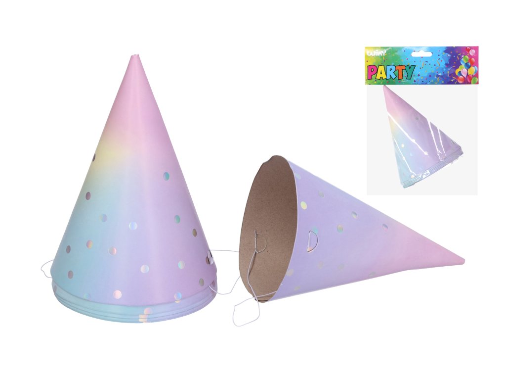 Papierové párty klobúčiky PASTEL o veľkosti 15 cm. Balenie obsahuje 6 ks.Dodatočné parametre