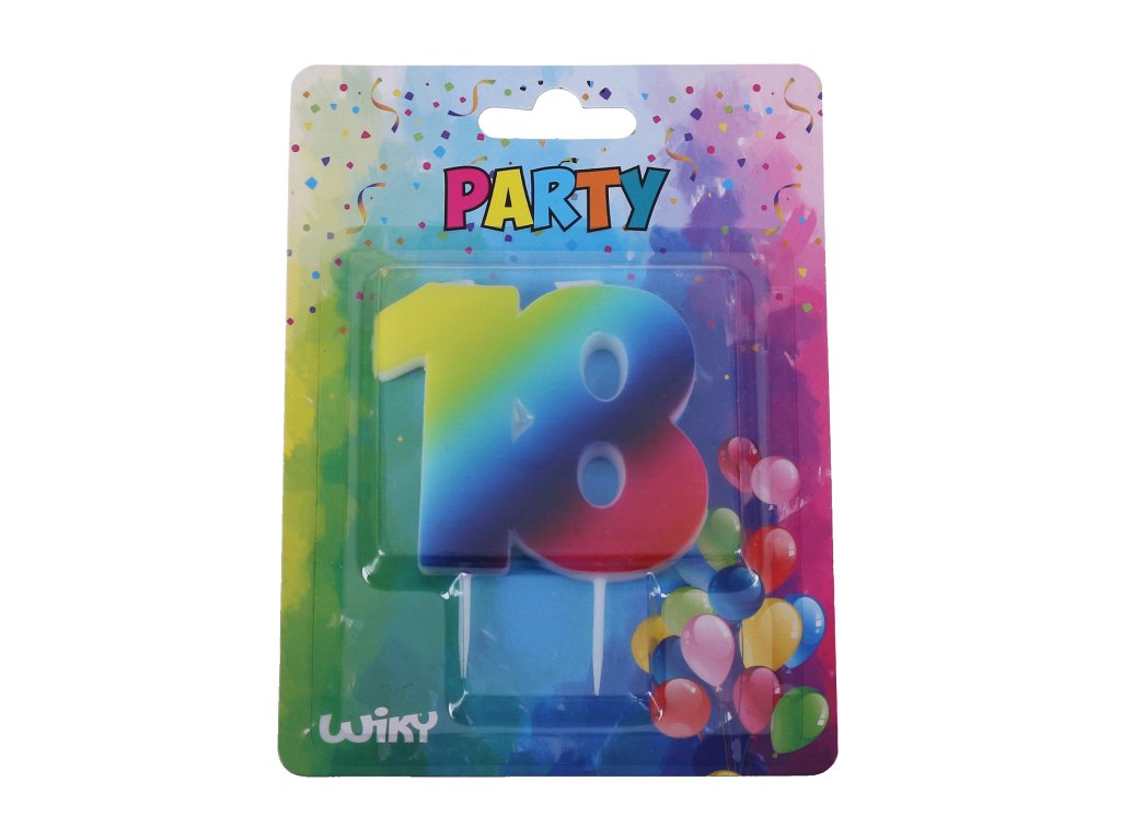 Narodeninová sviečka dúhová číslo 18 so stojanom z vosku pre pohodlné a pevné umiestnenie na tortu. Sviečky nie sú určené na konzumáciu. Dokonale pasuje k moderným farebným, ale aj klasickým tortám. Veselý a zároveň elegantný design.Dodatočné parametre