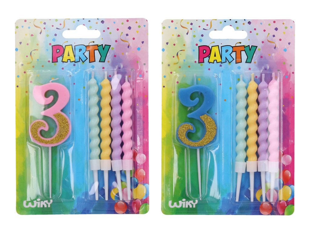 Párty sviečka číslo 3 + 4ks sviečok