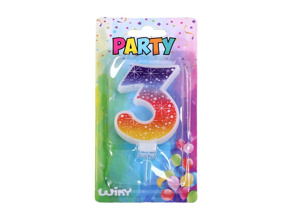 Párty sviečka v tvare čísla 3. Dekorácie.Dodatočné parametre